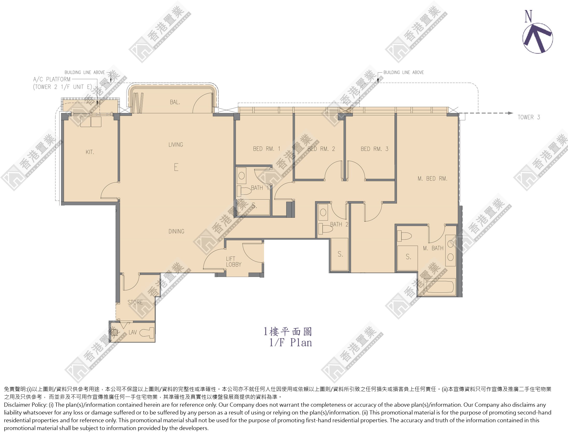 請注意: 上述所載的資料及素材(「該等素材」)在賣方就發展項目指定的互聯網網站及/或一手住宅物業銷售資訊網取得,其準確性及真實性以官方紀錄為準,香港置業代理 有限公司(“本公司”)無法就該等素材內容的準確性及/或真實性作岀任何承諾及保證,亦不會就此向任何因使用或倚賴該等素材而蒙受任何損失或損害的人士負上任何責任。該等素材只供參考。在籌備該等素材時,雖已作出合理謹慎措施,但本公司及/或本集團的任何成員不會就該等素材之完整性、準確性、及時性及可靠性,或該等素材適合某特定用途,作出任何形式的陳述或保證(不論是明示或隱含的),亦不保證該等素材與賣方就發展項目指定的互聯網網站及/或一手住宅物業銷售資訊網同步更新內容,閣下需自行向賣方/一手住宅物業銷售監管局查証以取得最新資料。“本集團”指(i) 本公司; (ii)本公司之任何控股公司、附屬公司及/或相聯公司; (iii) 其他與本公司屬同一集團的公司及; (iv)在上述(i)、(ii) 及/或(iii)內提及的任何公司的董事、人員及僱員。藉着閱覽該等素材,即代表閣下已無條件同意本條款及條件。倘若閣下不接納本條款及條件,請點擊此處,離開本網頁。