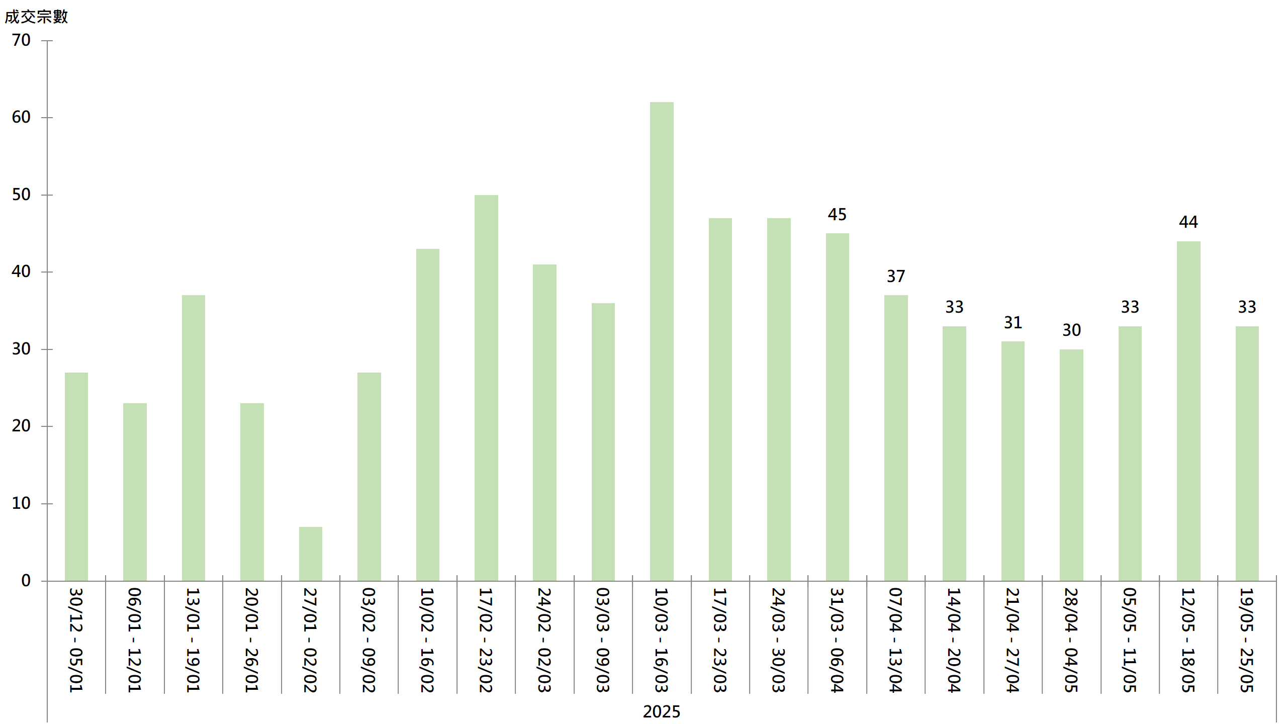 图︰20大屋苑每周二手买卖成交宗数走势