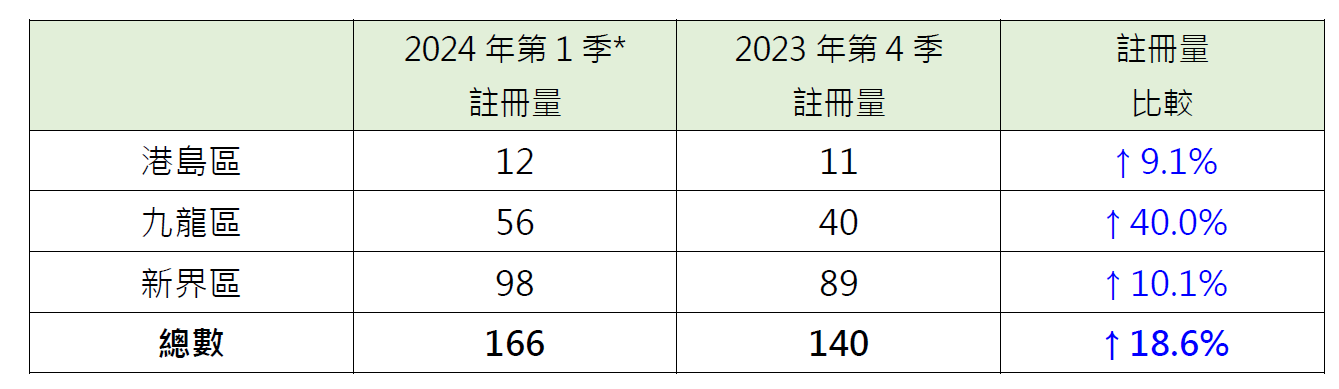 若以三区划分首季(截至3月21日)二手公屋注册量表现,其中九龙区录56宗注册,较上季的40宗增加40%;新界区录98宗注册,较上季的89宗增加约10.1%;港岛区录12宗注册,较上季的11宗增加约9.1%(见表)。