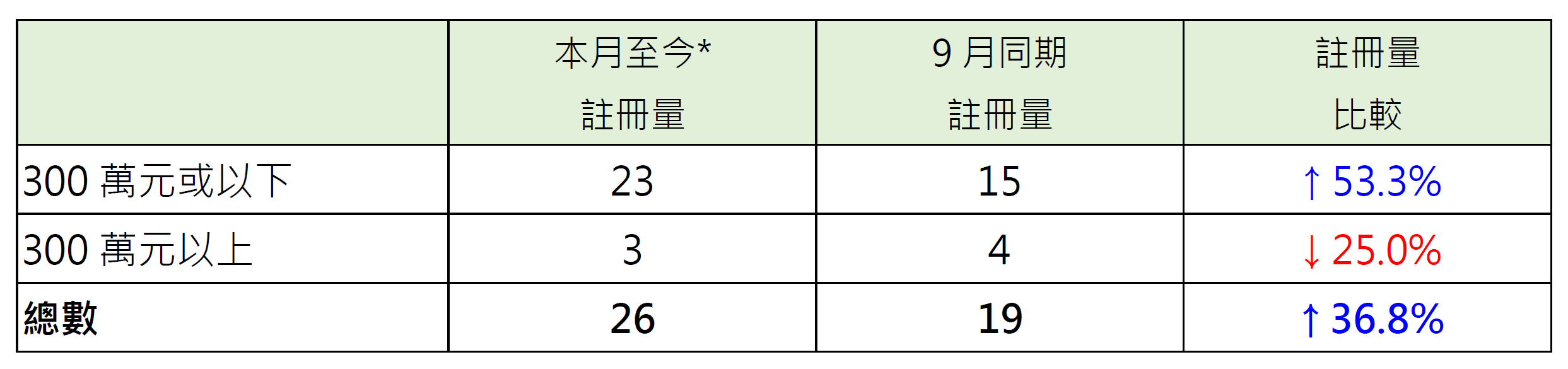 鉴于签署买卖合约至递交到土地注册处注册登记需时,每月注册个案一般主要反映前一个月市况