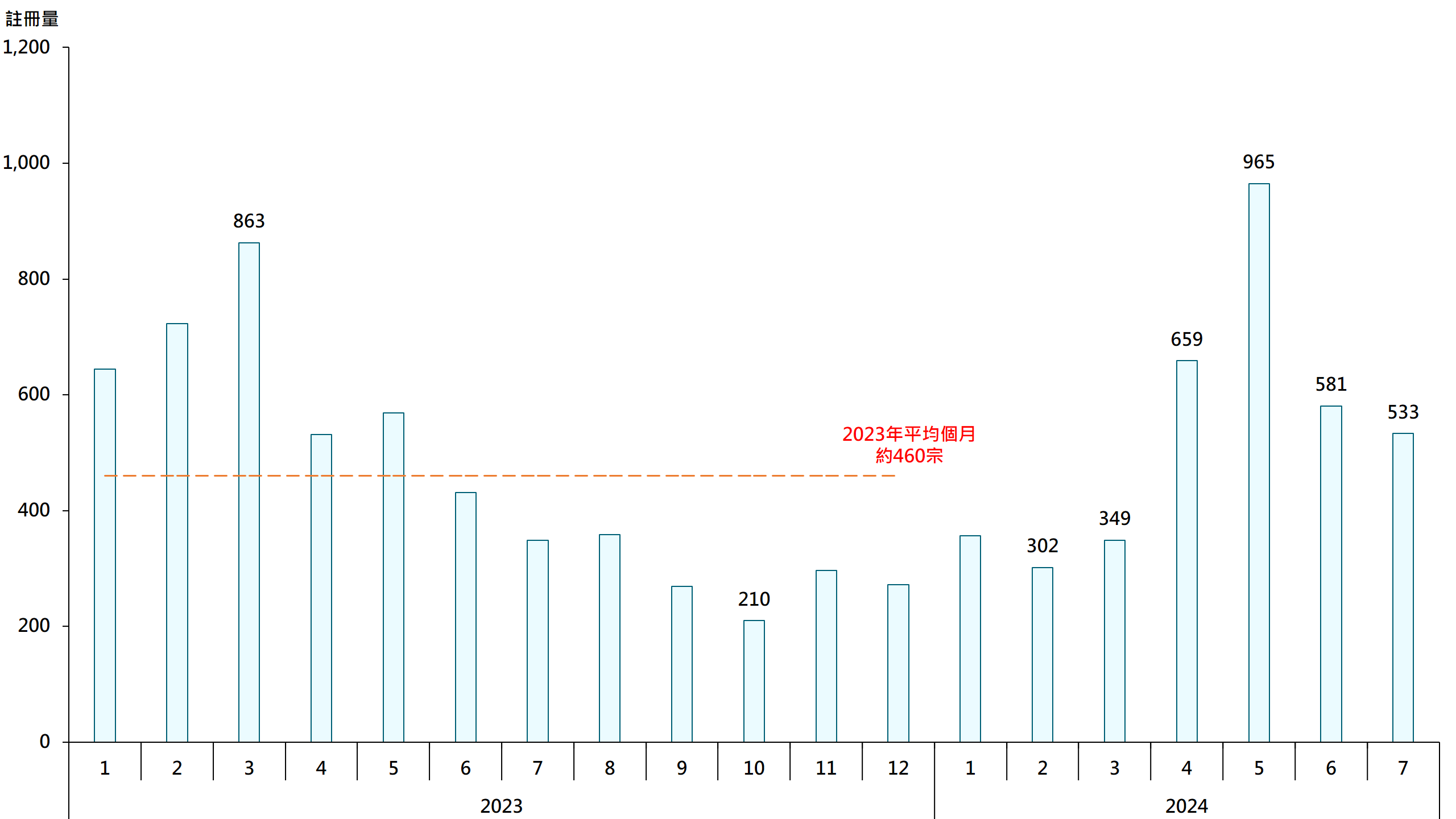 据土地注册处资料显示,二手居屋(包括已补地价的自由市场及未补地价的第二市场)7月录533宗注册,较6月的581宗减少约8.3%,但若与2023年平均每月约460宗相比仍高出逾1成半(见图)。鉴于签署买卖合约至递交到土地注册处注册登记需时,7月注册个案一般主要反映6月市况。