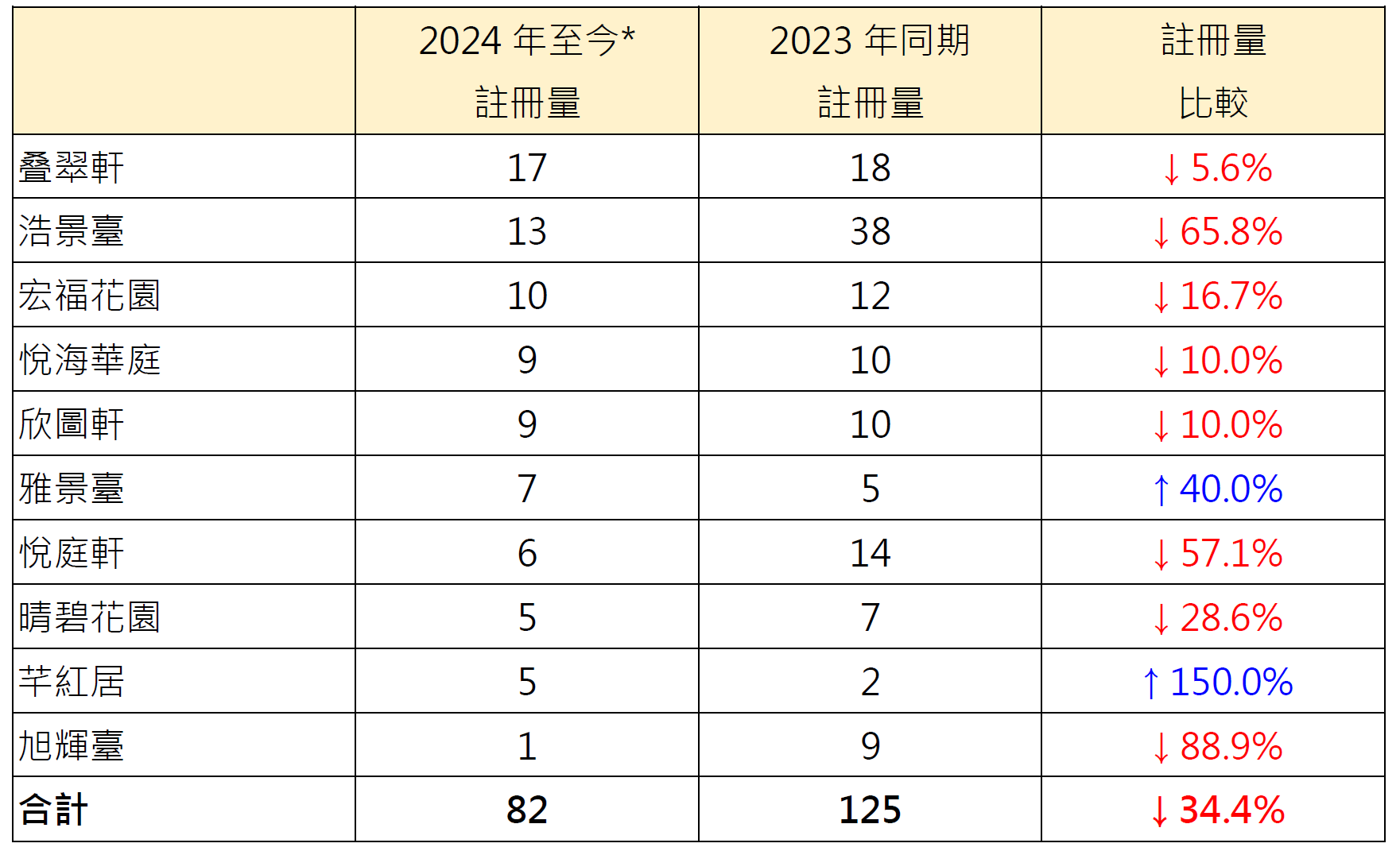 表︰本年至今*10个二手夹屋屋苑注册量