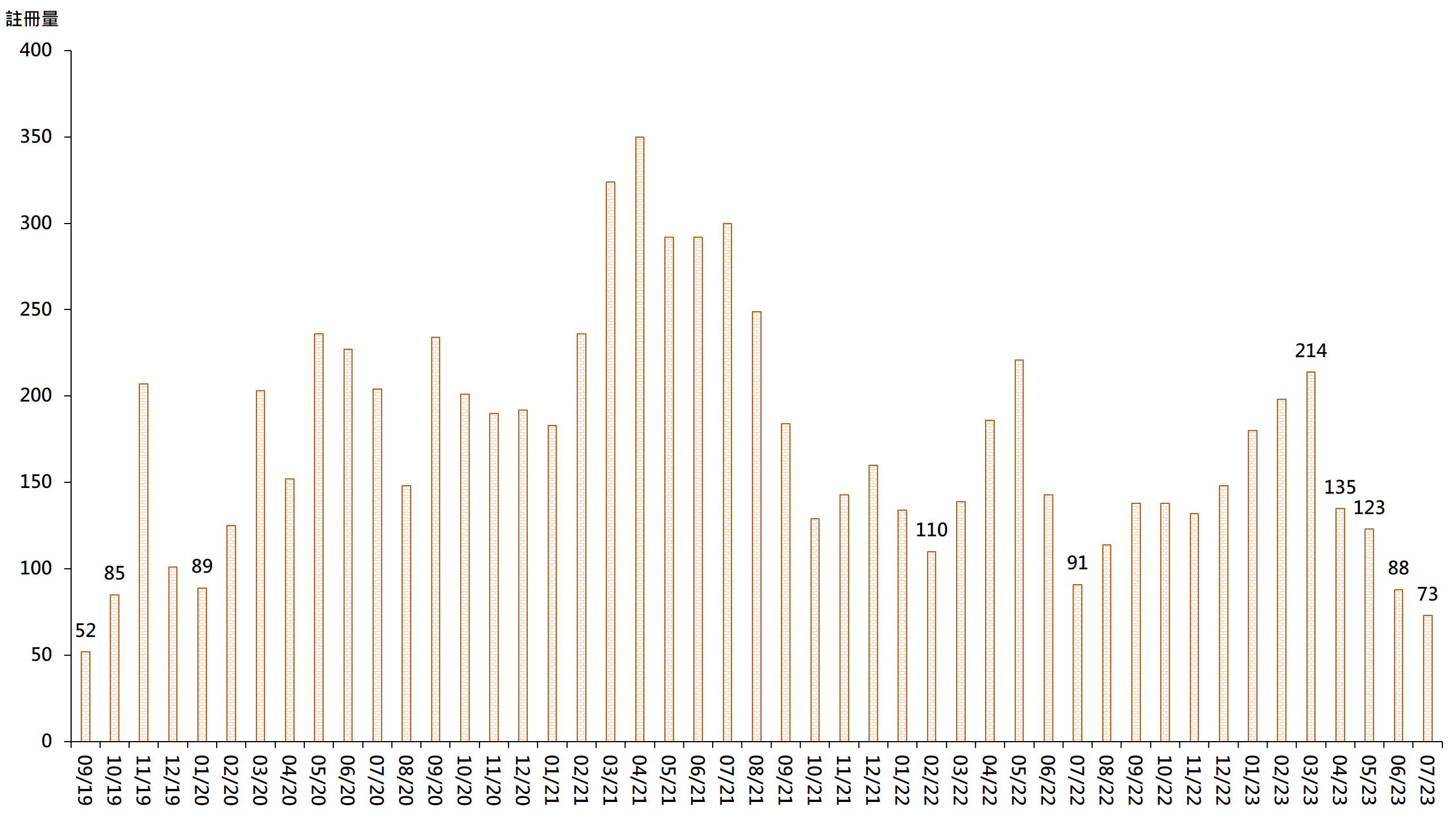 据土地注册处资料显示,7月将军澳区20个私人屋苑录73宗二手住宅注册,较6月的88宗减少约17%,创近4年新低(见图)。鉴于签署买卖合约至递交到土地注册处注册登记需时,7月注册个案一般主要反映6月市况。