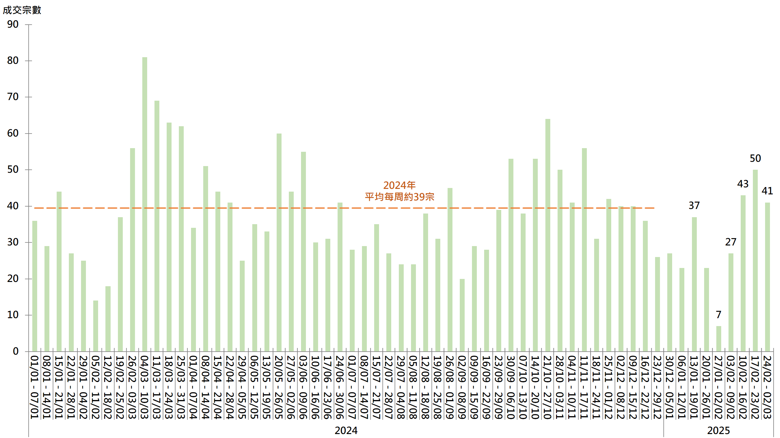 图︰20大屋苑每周二手买卖成交宗数走势