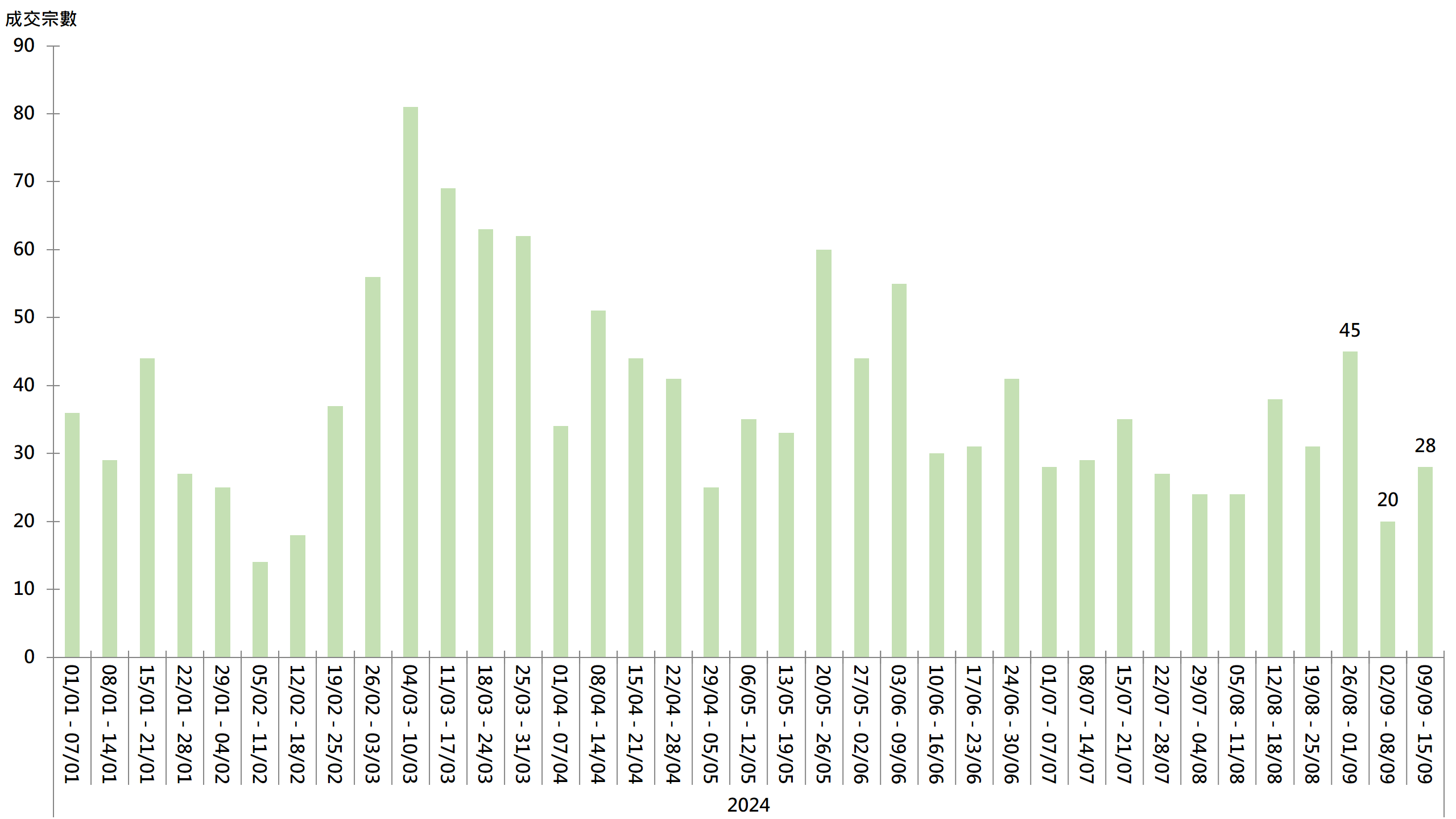 图︰20大屋苑每周二手买卖成交宗数走势
