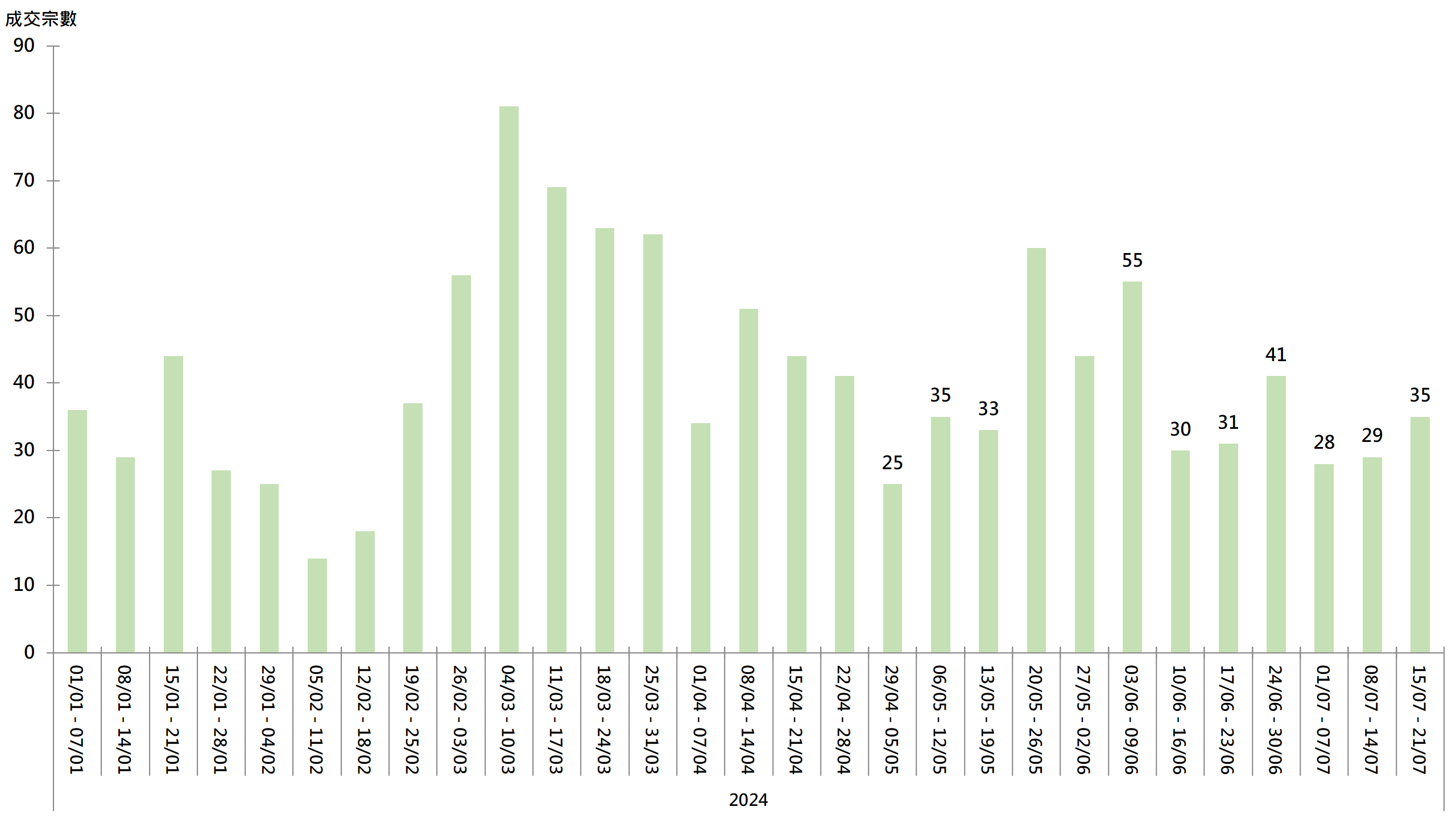 图︰20大屋苑每周二手买卖成交宗数走势