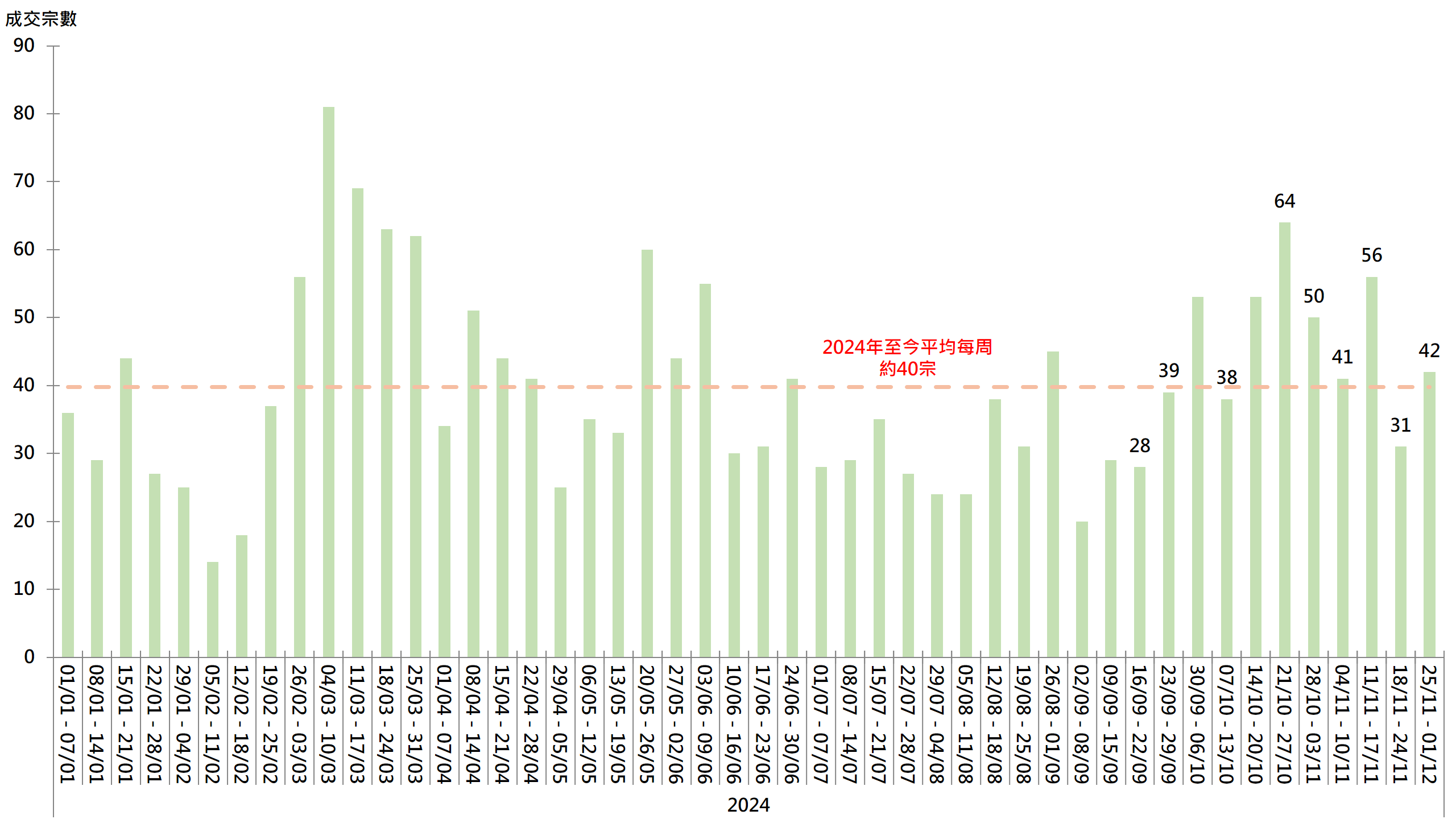 图︰20大屋苑每周二手买卖成交宗数走势