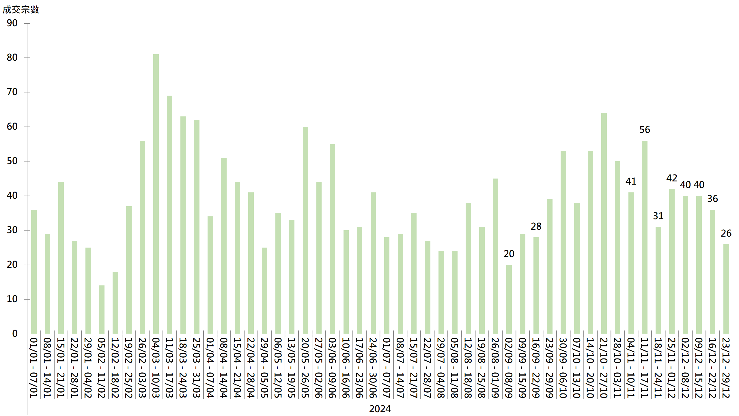 图︰20大屋苑每周二手买卖成交宗数走势