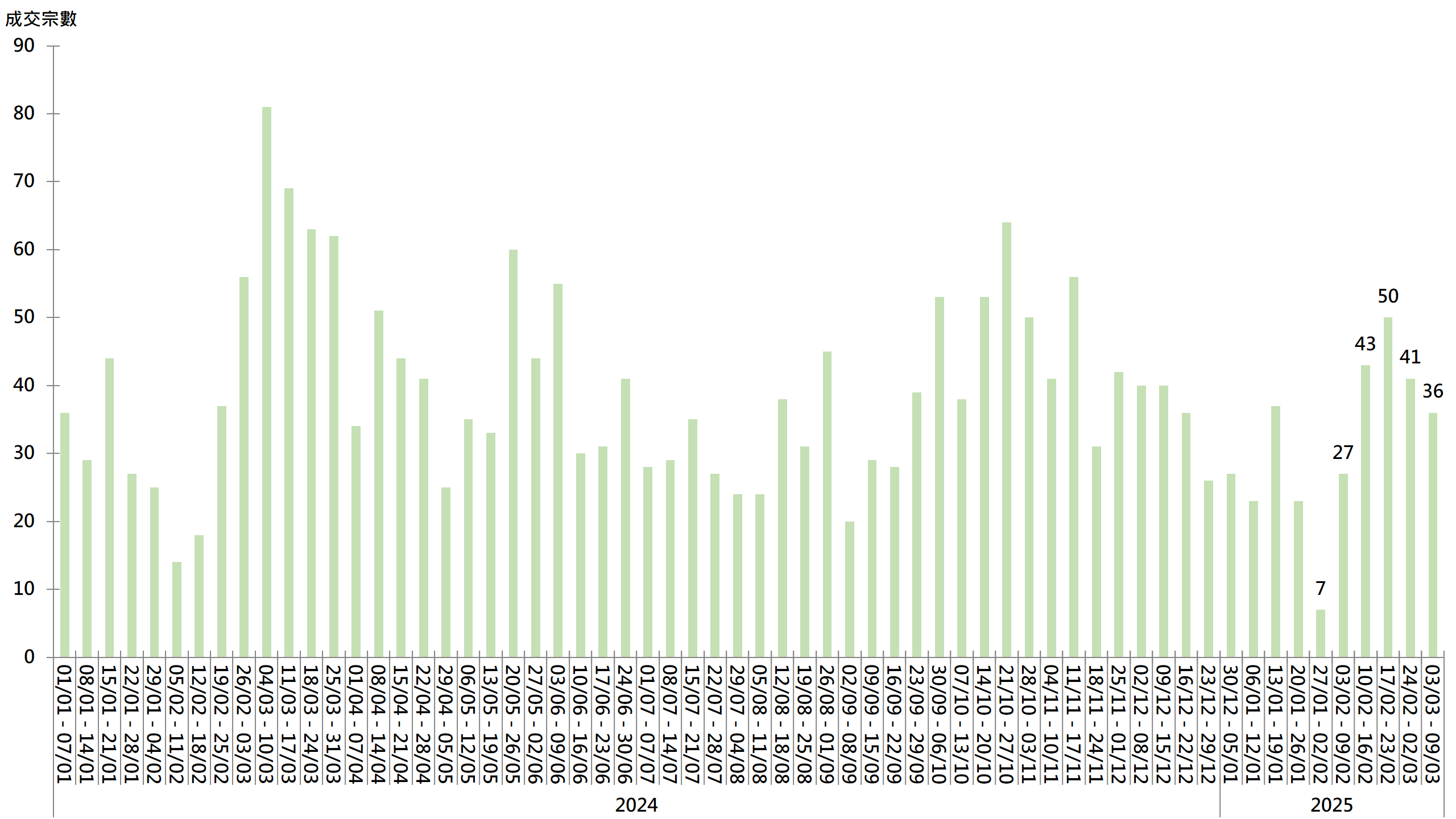 图︰20大屋苑每周二手买卖成交宗数走势