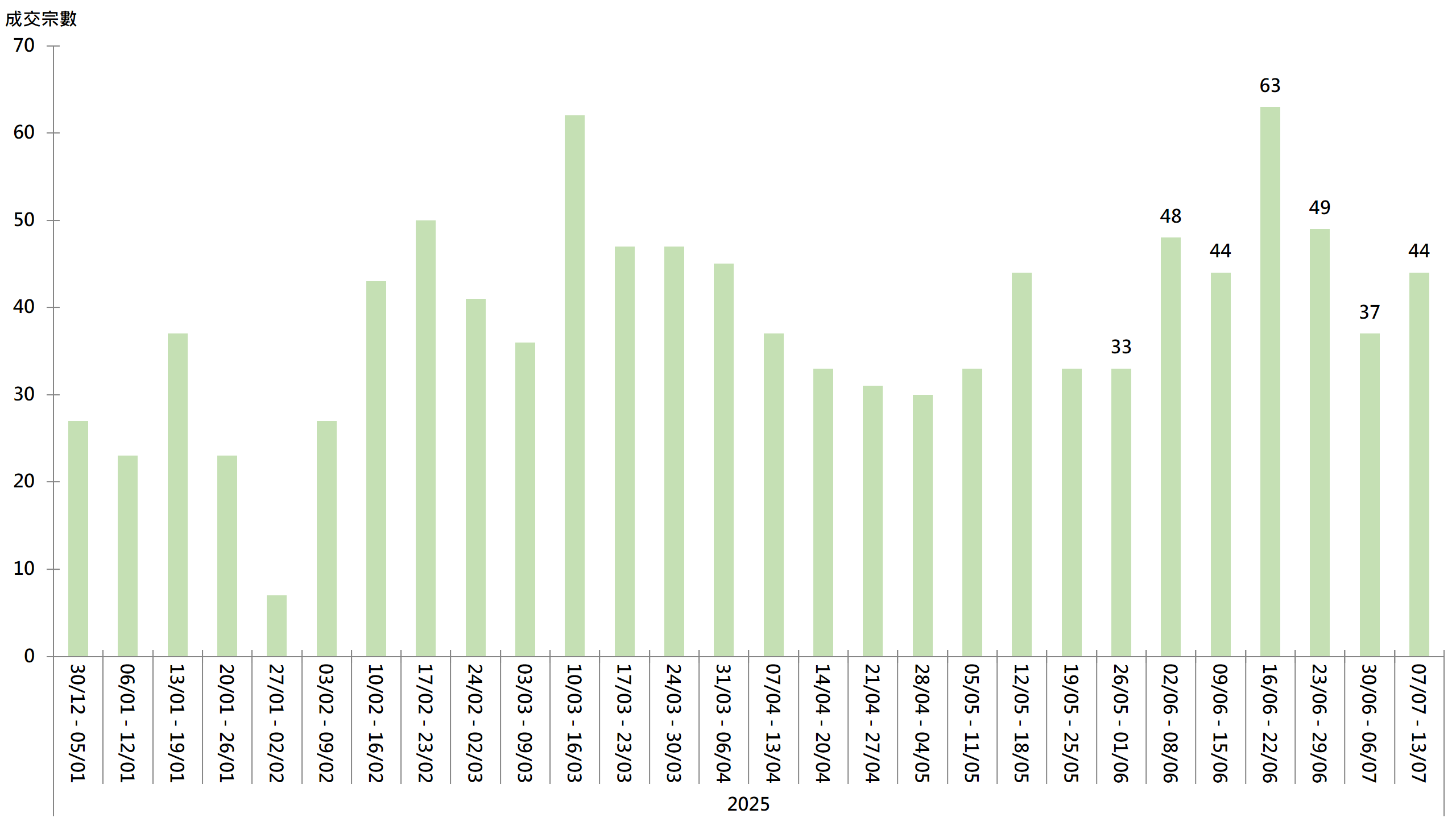 图︰20大屋苑每周二手买卖成交宗数走势