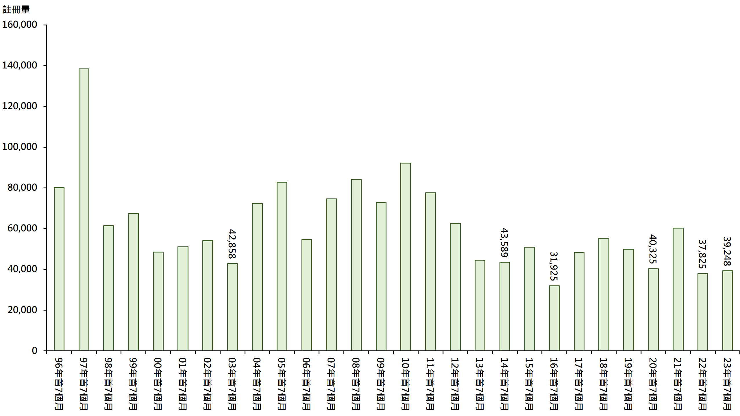 另外,今年首7个月整体物业录39,248宗注册,较去年同期的37,825宗增加约3.8%;不过,由1996年起计每年首7个月整体物业注册量,不难发现今年首7个月注册量水平偏低,为近28年同期第3低(见图)。