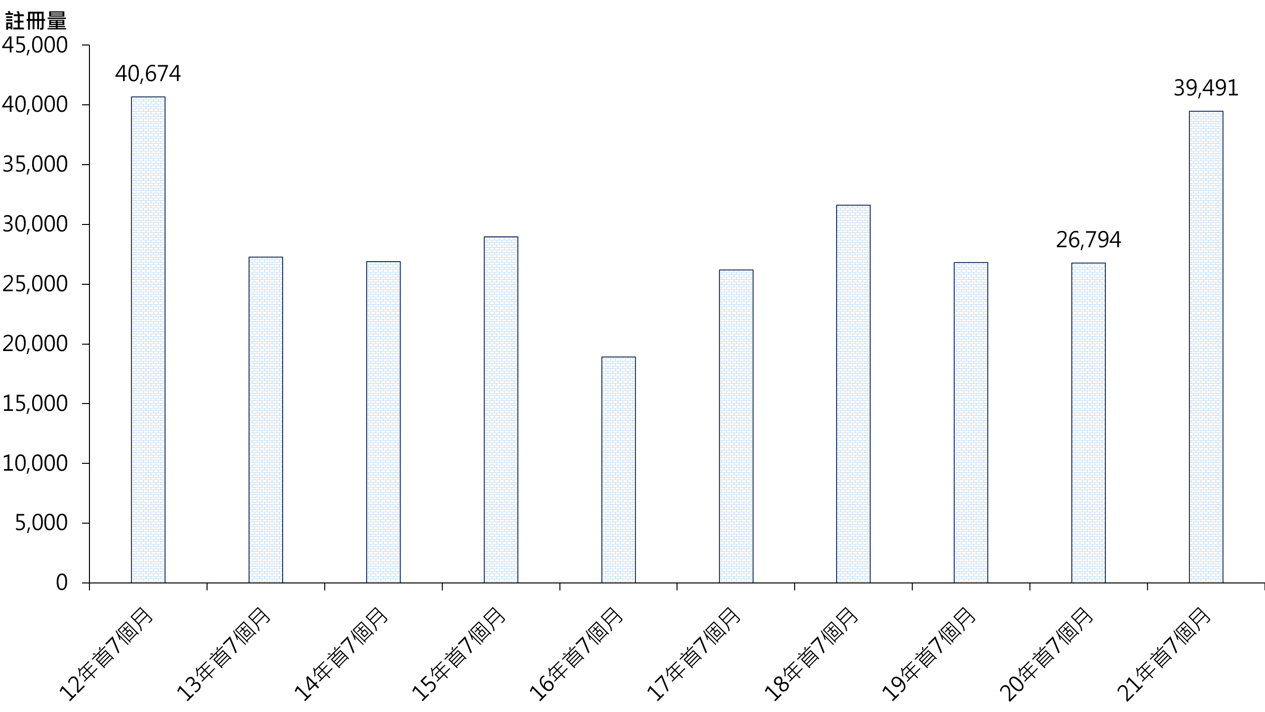 今年疫情缓和,疫苗陆续接种,市场憧憬经济逐渐复苏,入市意欲增加,二手交投畅旺;据土地注册处资料显示,今年首7个月录39,491宗二手住宅注册,较去年同期的26,794宗增加约47.4%,创近9年同期新高(见图)。