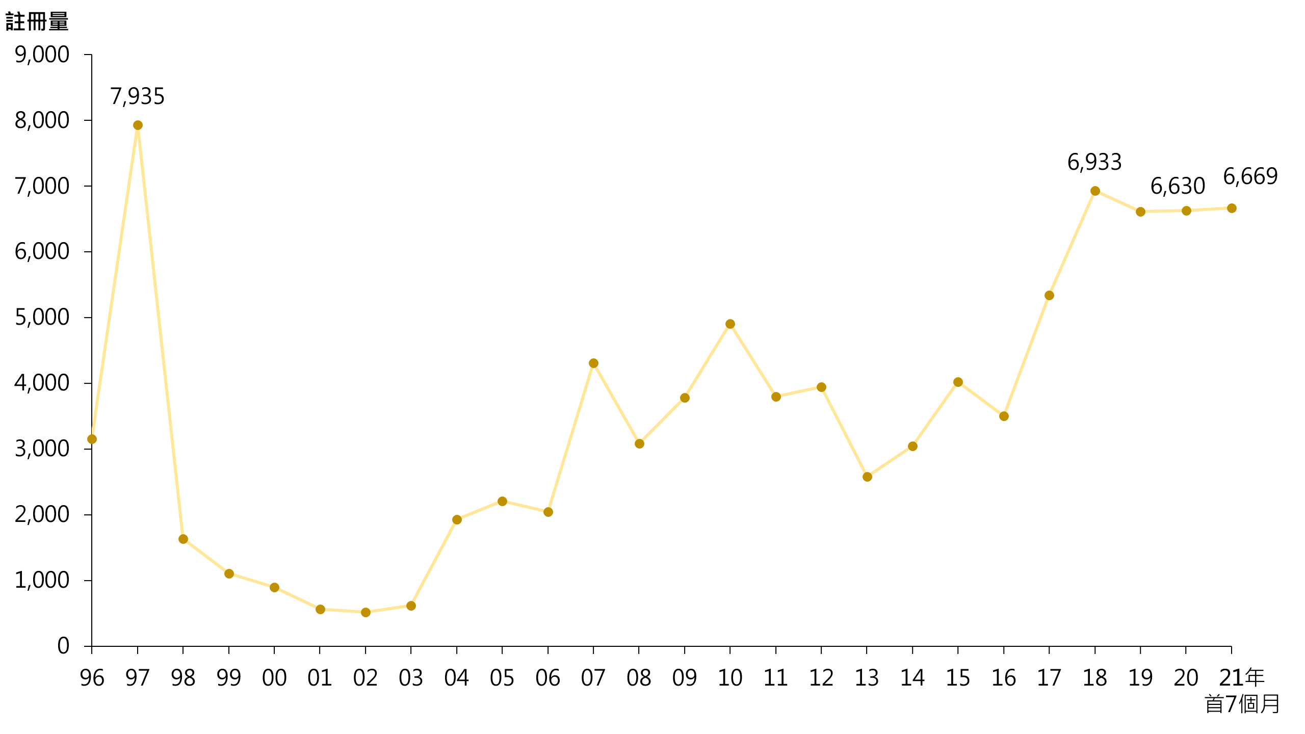 据土地注册处资料显示,逾1,000万元二手住宅今年首7个月录6,669宗注册,已超越去年全年的6,630宗水平约0.6%,暂创自96年有纪录以来第3高(见图)。