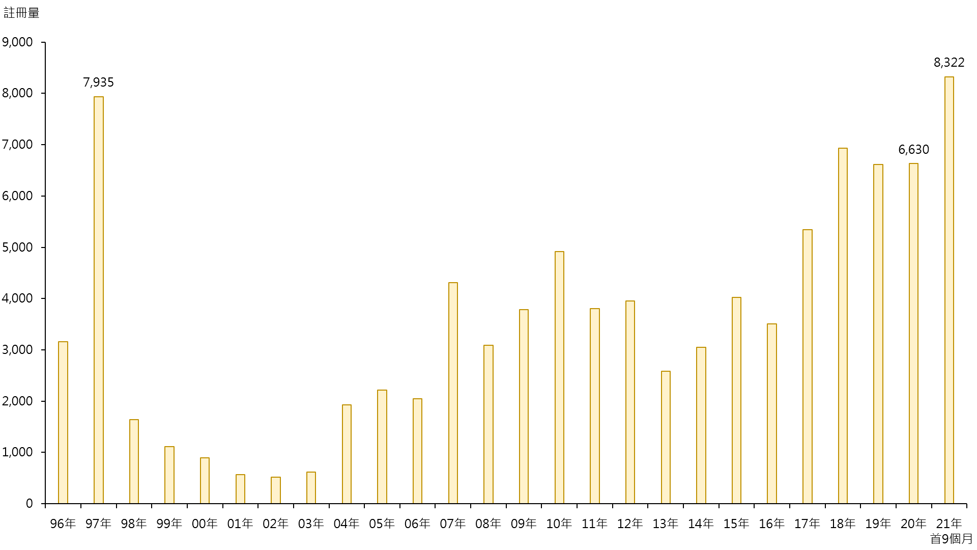 据土地注册处资料显示,9月录722宗逾1,000万元二手住宅注册,较8月的931宗减少约22.4%。鉴于签署买卖合约至递交到土地注册处注册登记需时,9月注册个案一般主要反映8月市况。注册量虽按月录跌,但以今年首9个月计,合共录8,322宗,已超去年全年6,630宗约25.5%,并已创有纪录新高(见图)。