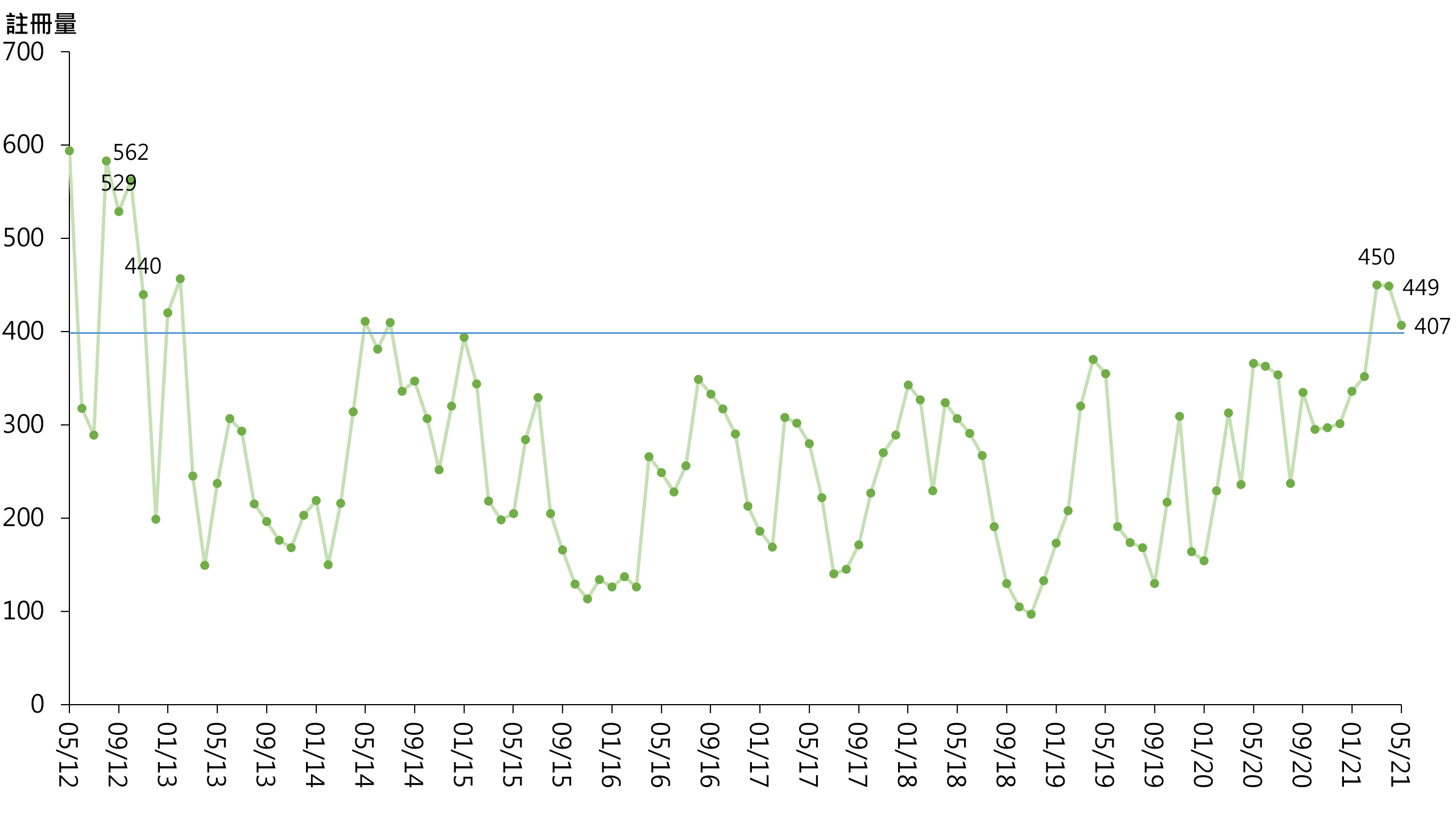 据土地注册处资料显示,十大传统屋苑5月录407宗注册,虽较4月的449宗减少约9.4%,但已连续3个月企稳逾400宗水平,是自12年11月后首见(见图)。鉴于签署买卖合约至递交到土地注册处注册登记需时,5月注册个案一般主要反映4月市况。