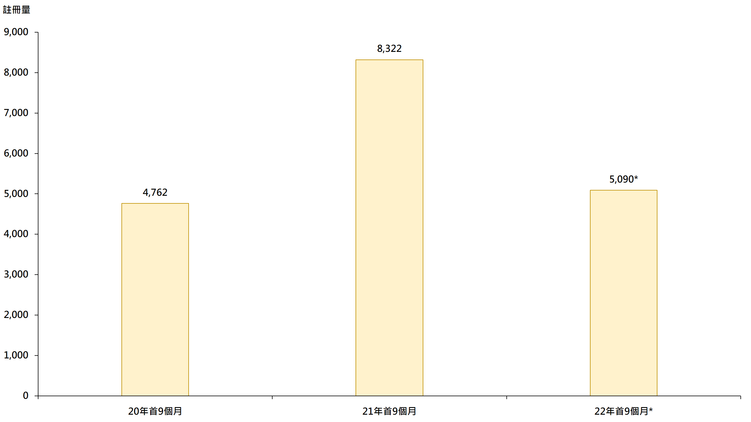 据土地注册处资料显示,本年至今(截至9月15日)逾1,000万元二手住宅录5,090宗注册,虽较21年首9个月的8,322宗减少约38.8%,但较20年首9个月的4,762宗则增加约6.9%(见图)。