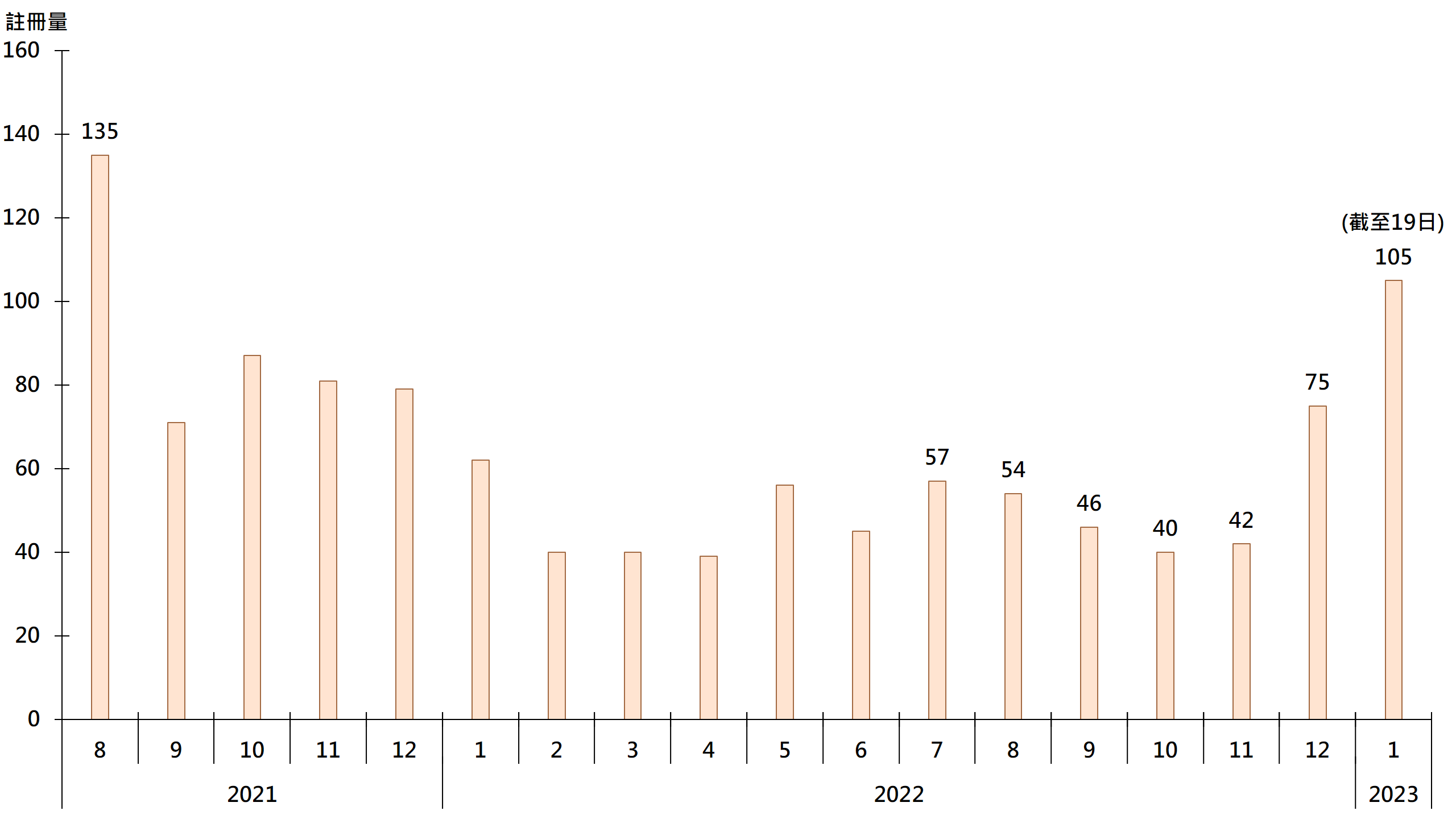近期白居二入市,带动二手公屋交投;据土地注册处资料显示,本月至今(截至19日)录105宗二手公屋(包括已补地价的自由市场及未补地价的第二市场)注册,已超去年12月全月的75宗40%,暂创近1年半新高(见图)。鉴于签署买卖合约至递交到土地注册处注册登记需时,今年1月注册个案一般主要反映去年12月市况。