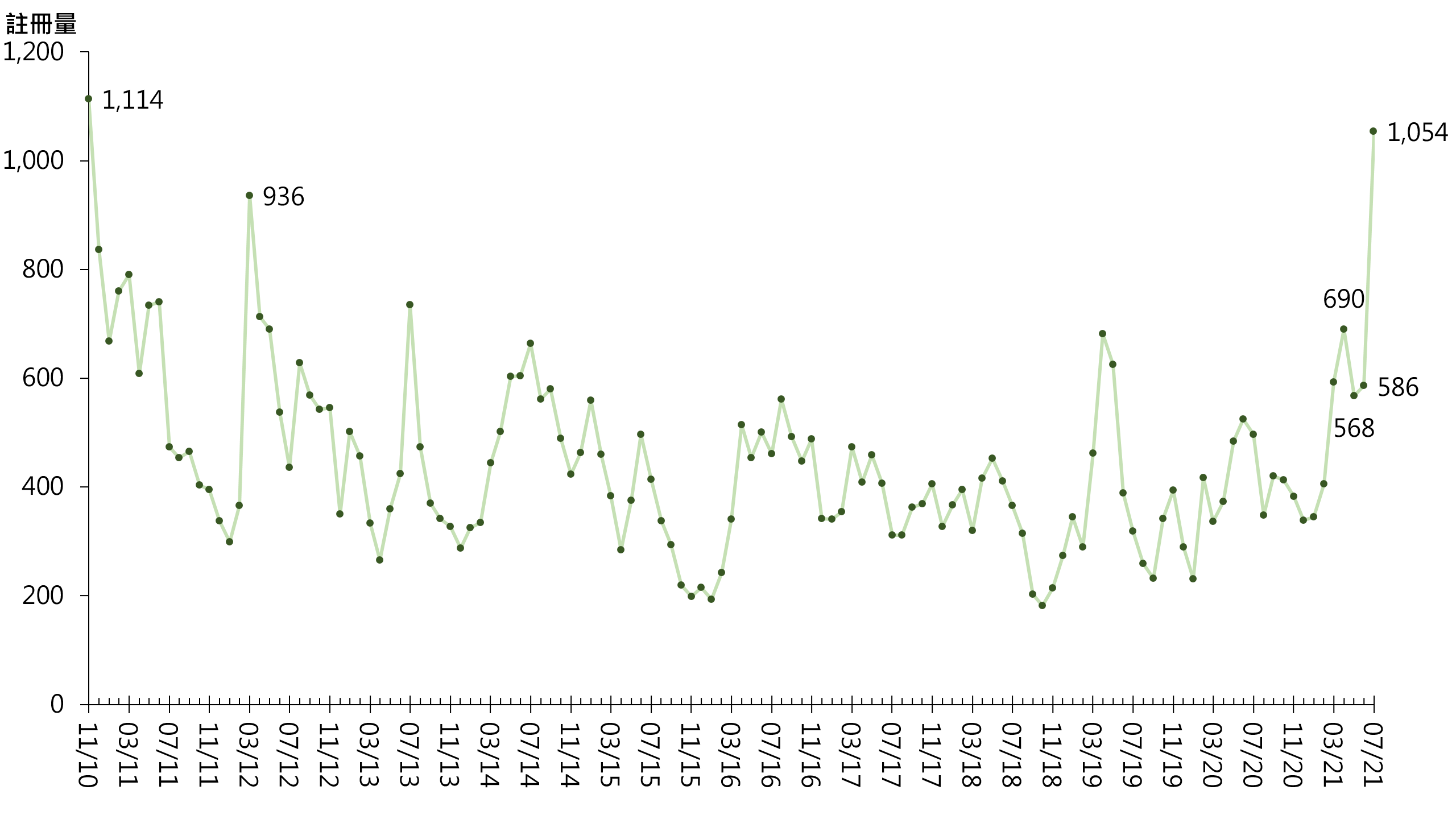 图︰每月二手居屋注册量走势