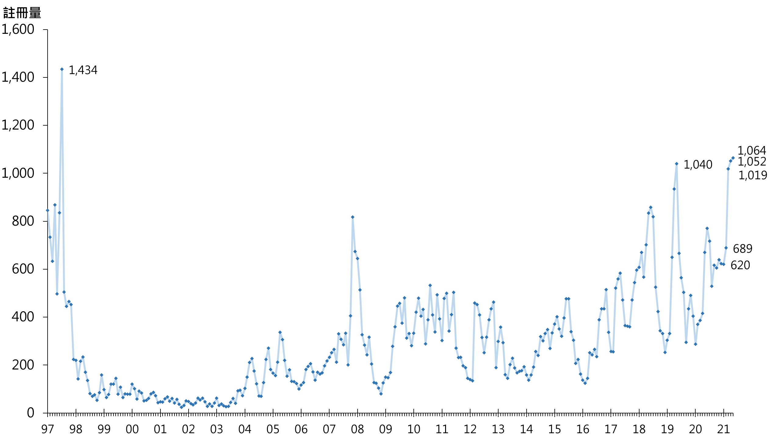 图:每月逾1,000万元二手住宅注册量走势