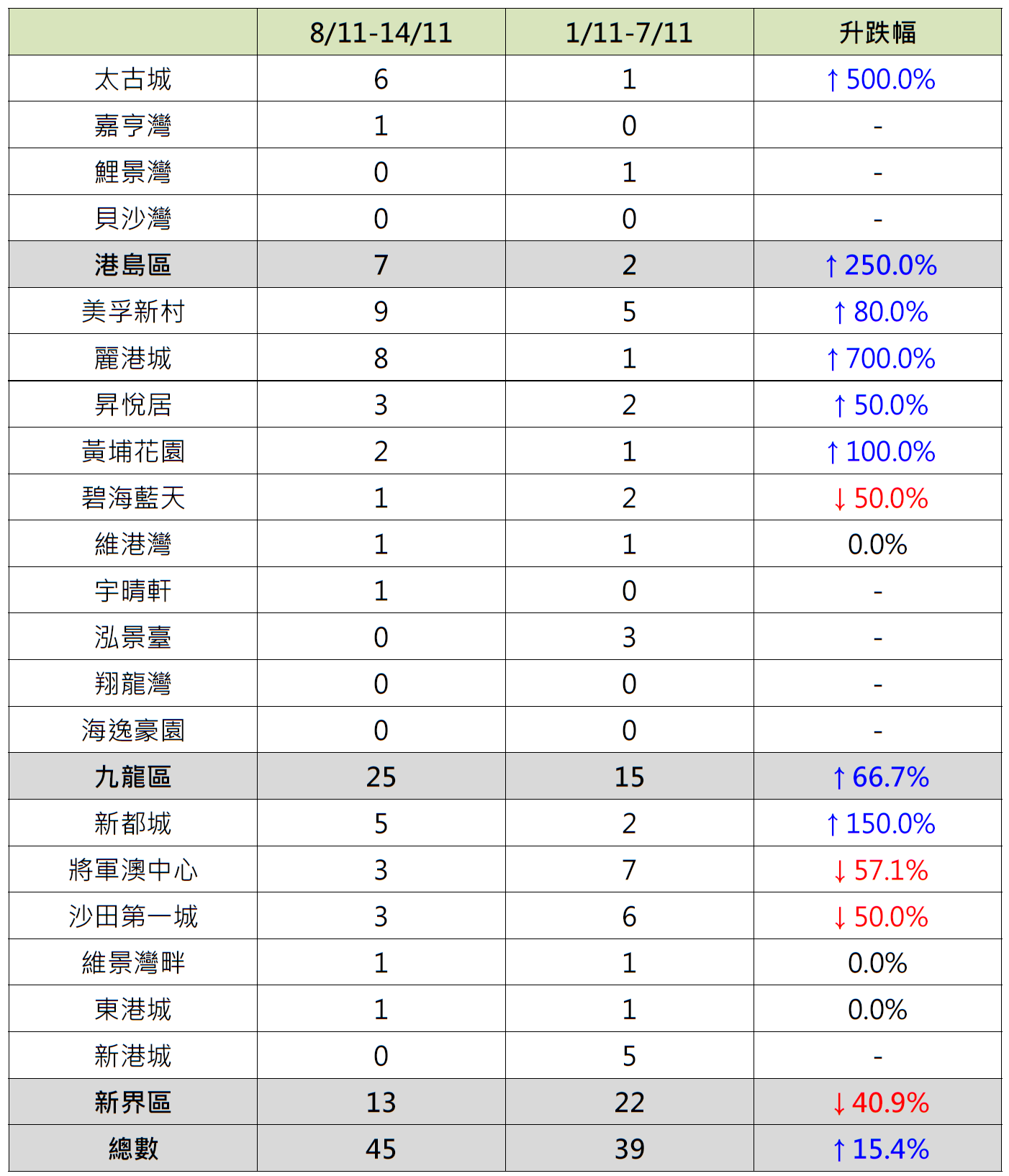 20大屋苑上周录45宗成交 按周增逾1成半 创近3周新高