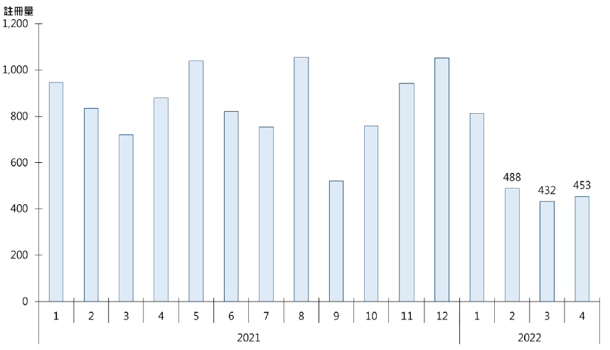 据土地注册处资料显示,纯车位4月录453宗注册,较3月的432宗增加约4.9%(见图)。鉴于签署买卖合约至递交到土地注册处注册登记需时,4月注册个案一般主要反映3月市况。