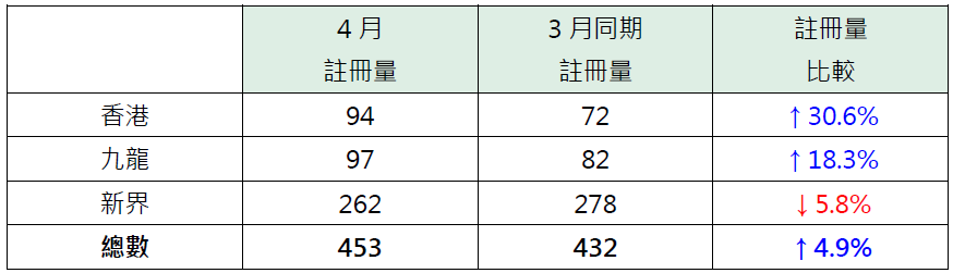 4月纯车位录453宗注册 按月升近半成