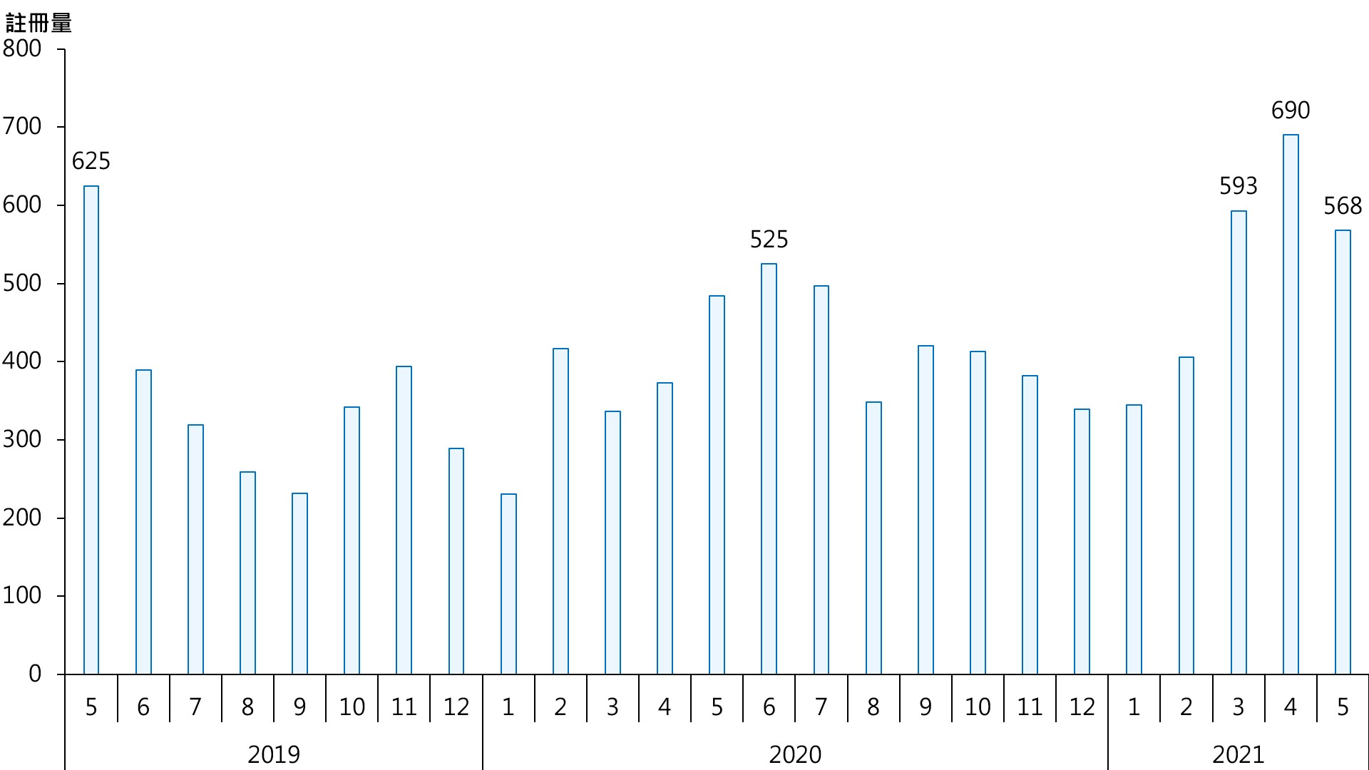 图︰每月二手居屋注册量走势