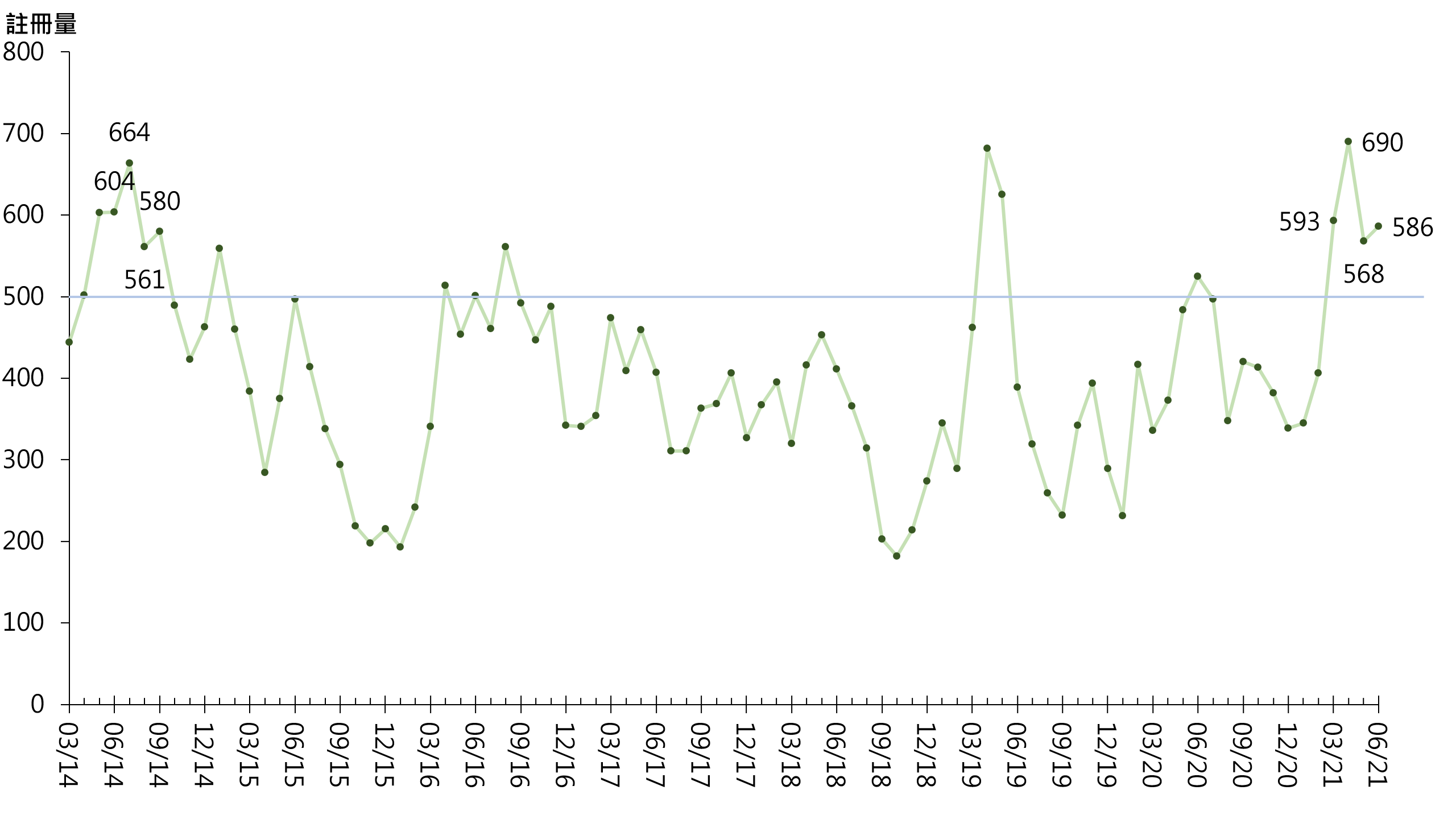 图︰每月二手居屋注册量走势
