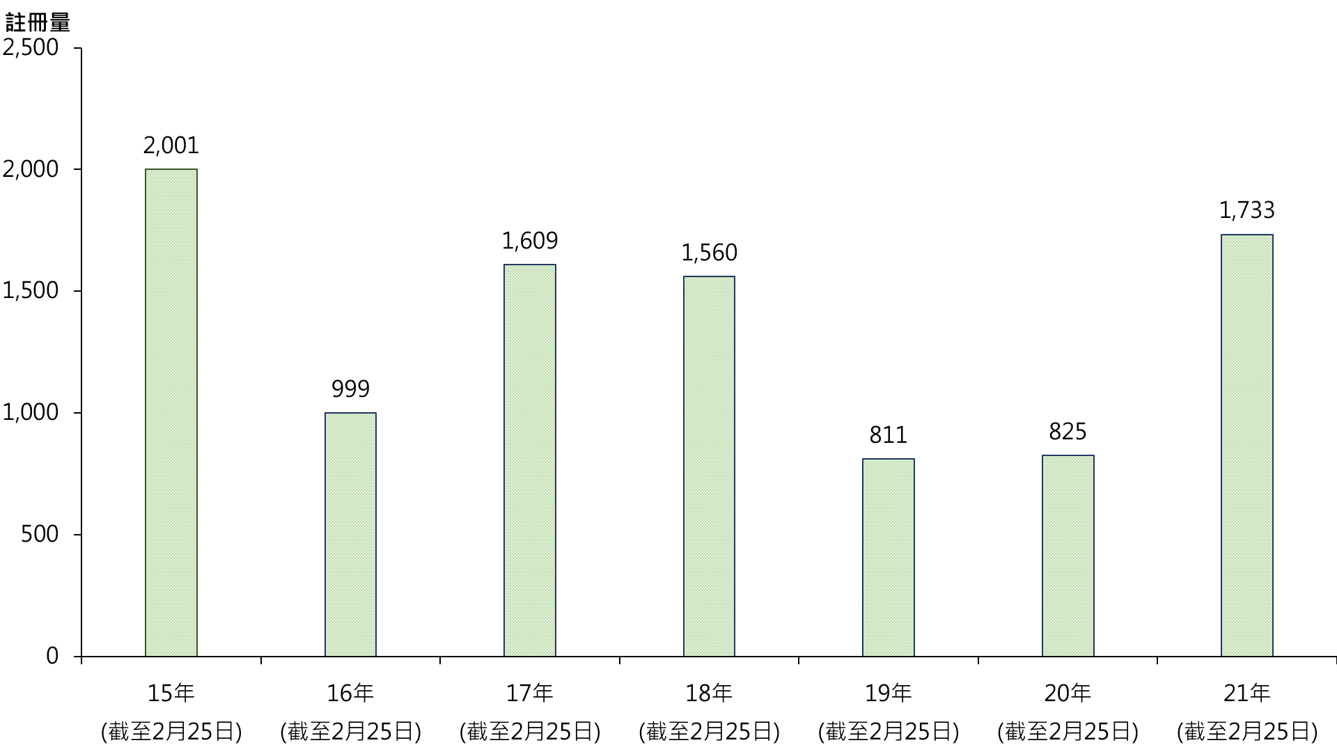 据土地注册处资料显示,本年至今(截至2月25日)录1,733宗纯车位注册,较去年同期的825宗大增约1.1倍,创近6年同期新高(见图)。