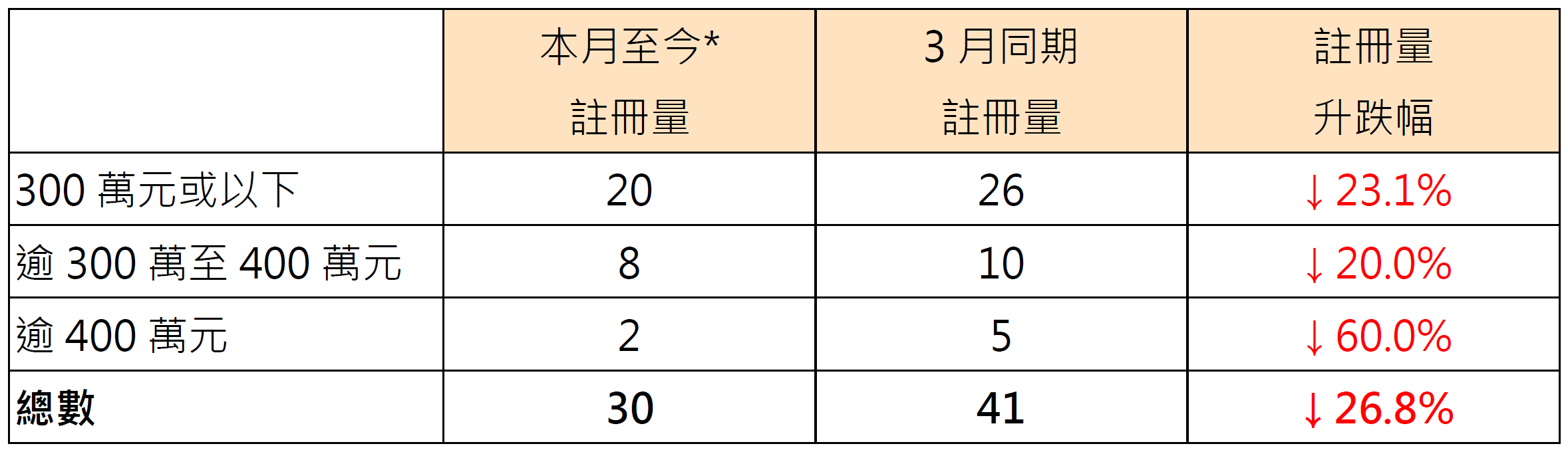 表︰按金额划分本月至今*二手公屋注册量与3月同期比较