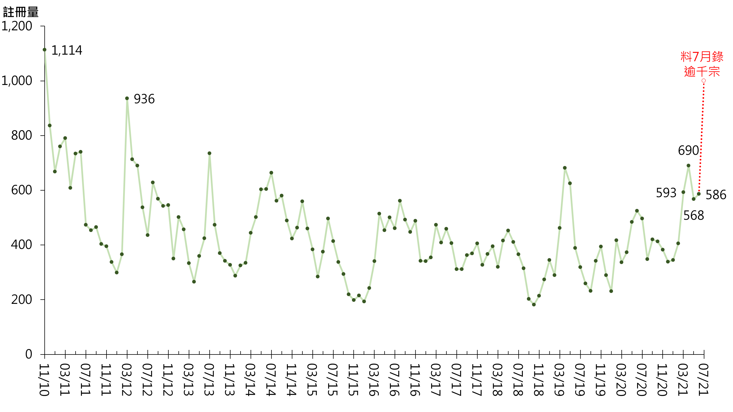 图︰每月二手居屋注册量走势