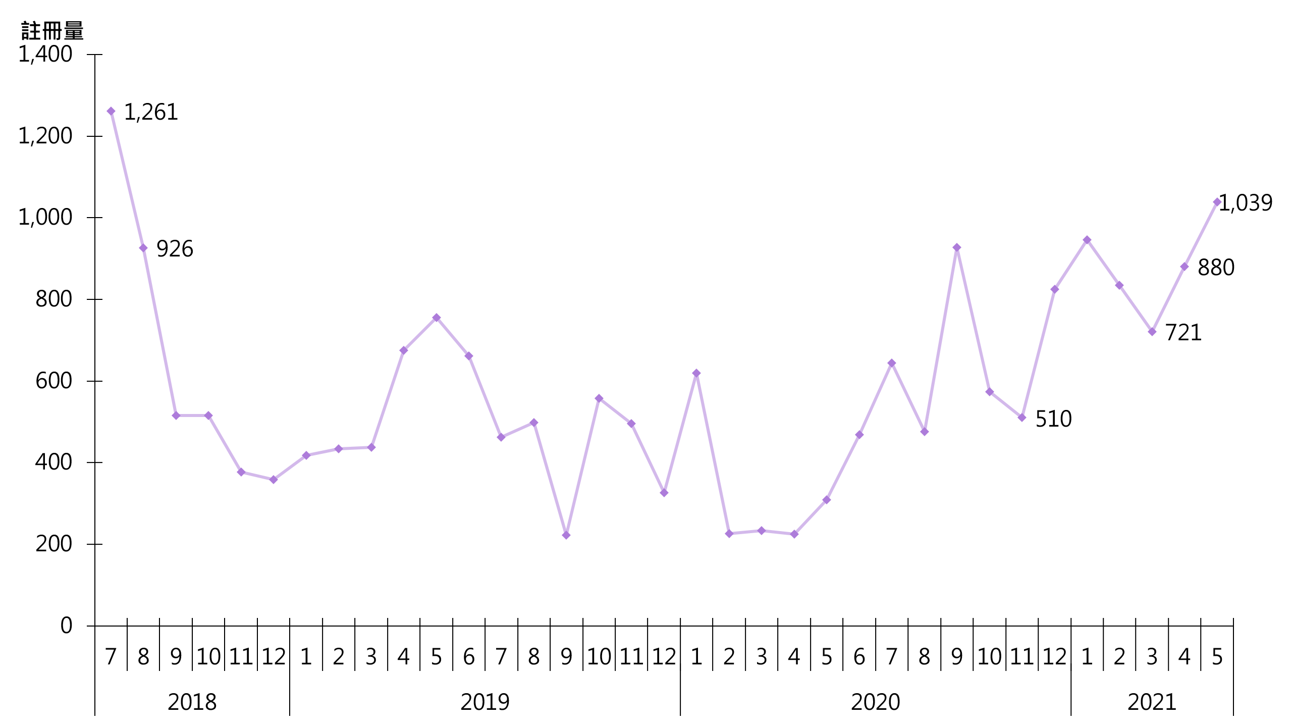 自政府于去年11月撤销非住宅物业双倍从价印花税,车位交投转趋活跃。据土地注册处资料显示,5月录1,039宗纯车位注册,较4月的880宗增加约18.1%,连升两个月,兼创近3年新高(见图)。