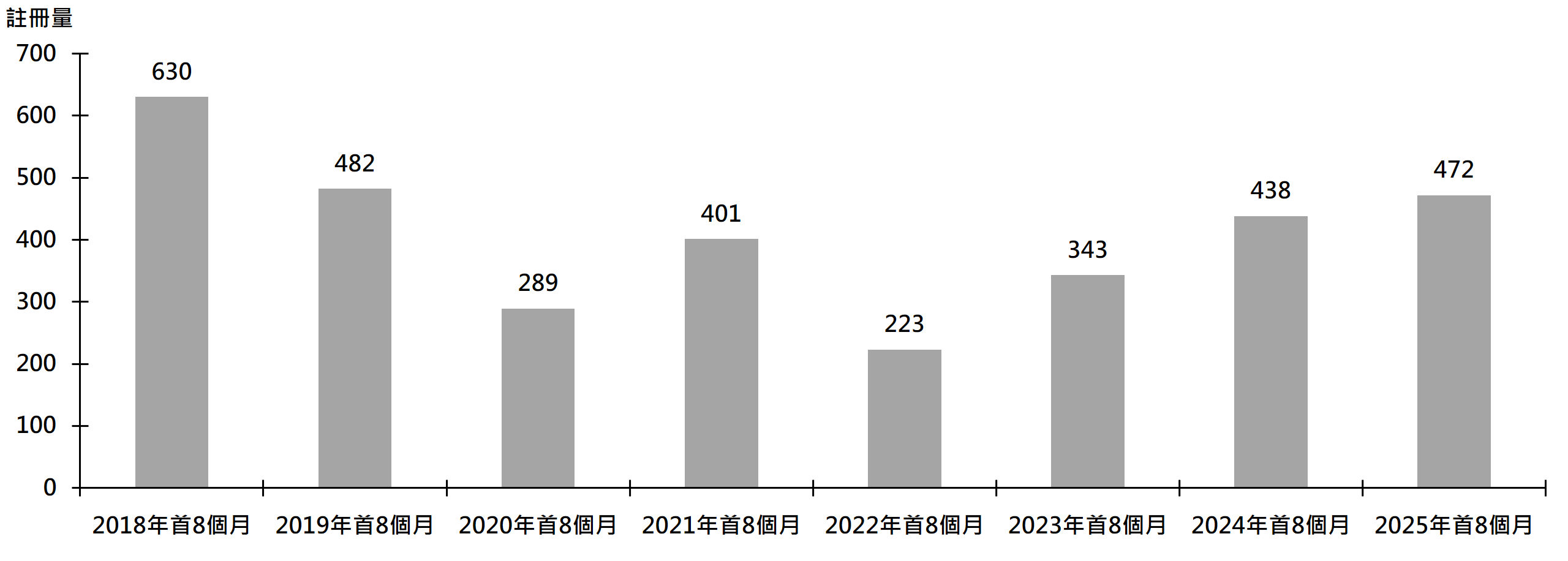 图:每年首8个月九龙区(包括将军澳及西贡)逾3,000万元住宅物业注册量