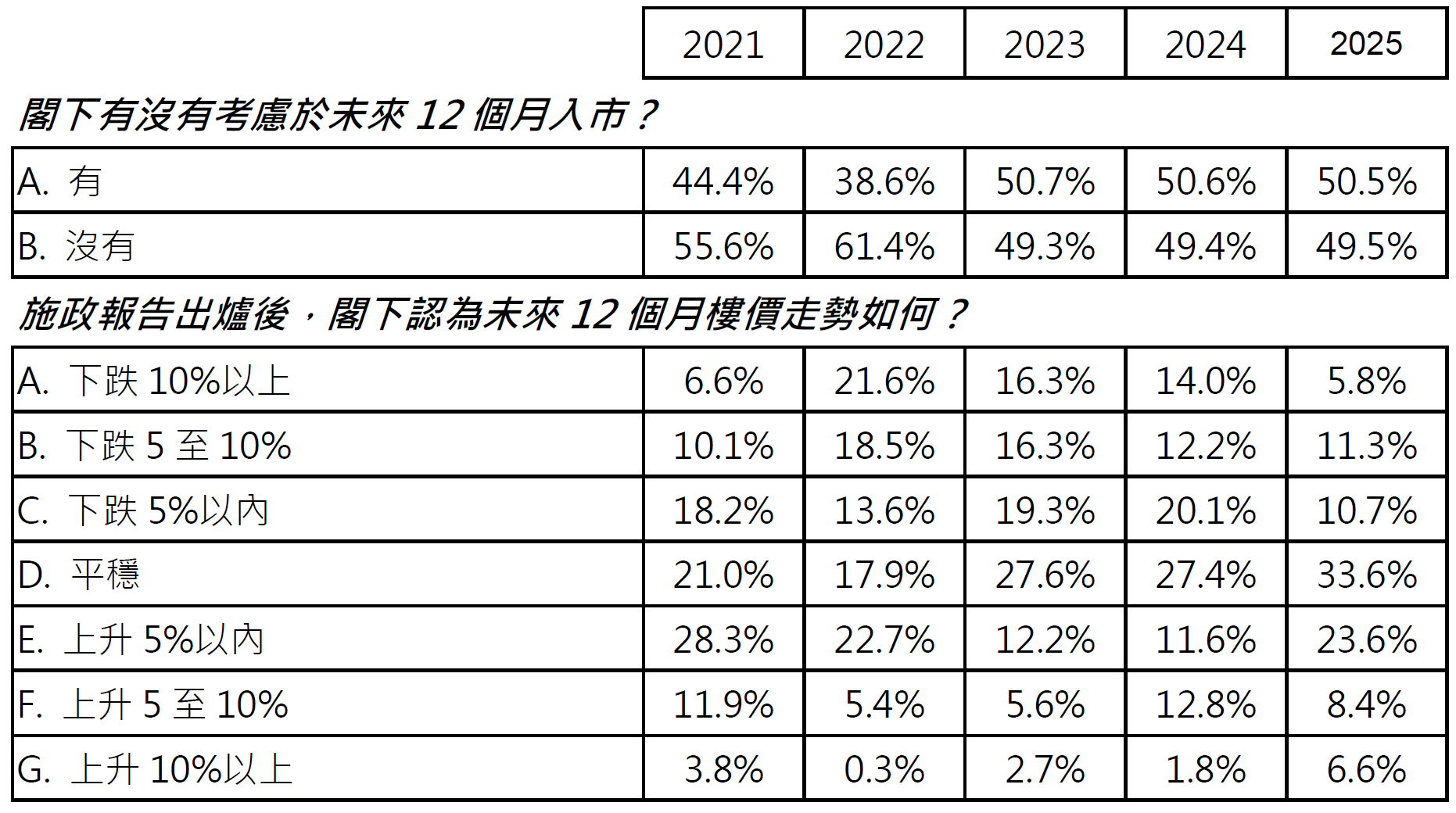 表:施政报告后调查历年比较