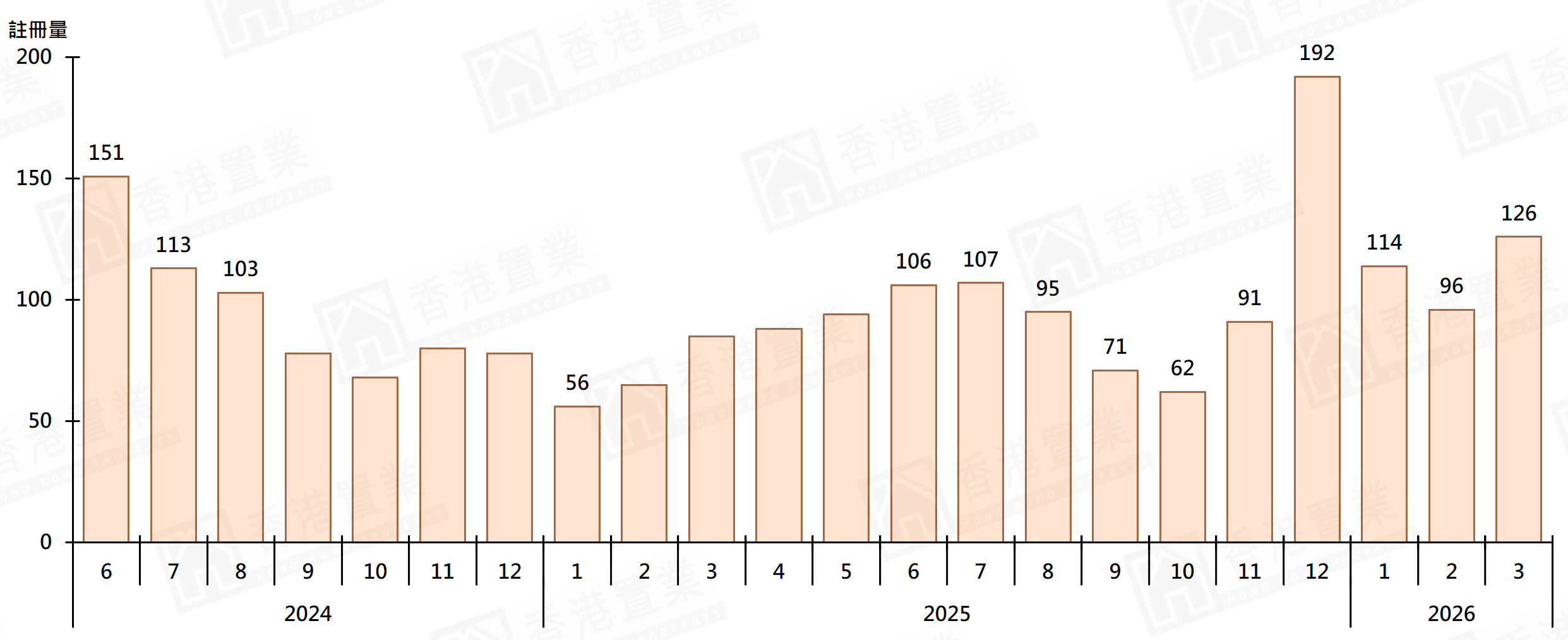 鉴于签署买卖合约至递交到土地注册处注册登记需时,每月注册个案一般主要反映前一个月市况