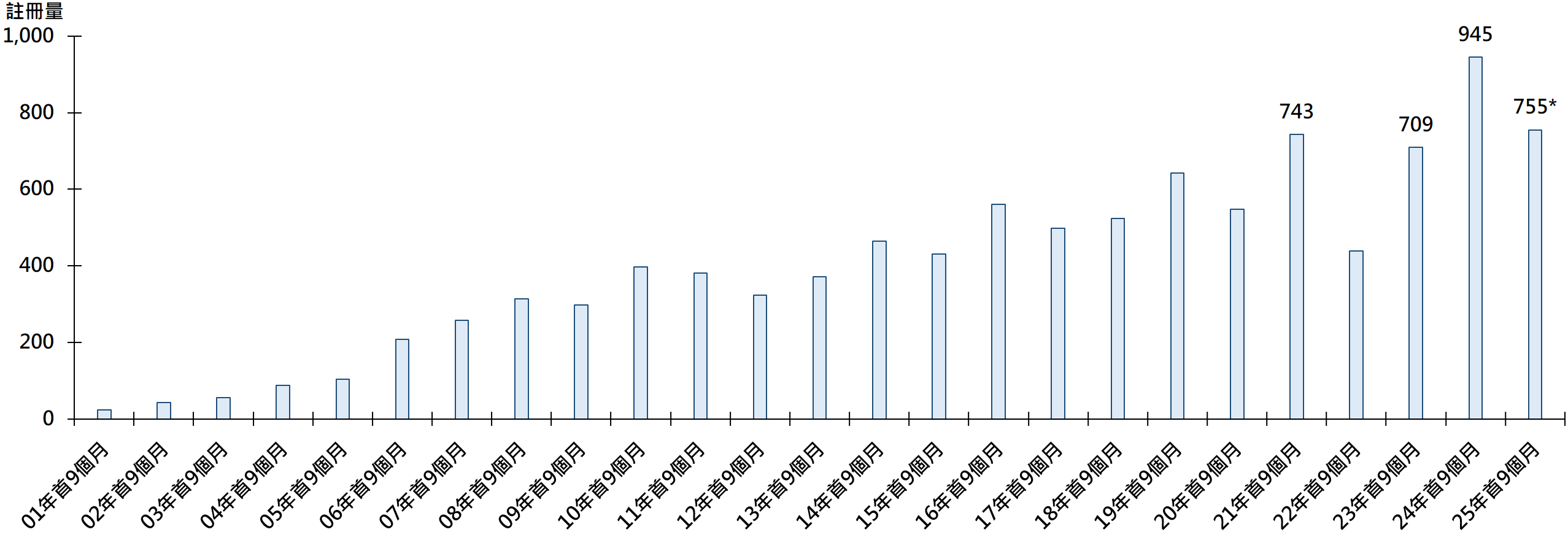 尽管如此,但若以今年首9个月计算,年内(截至9月25日)二手公屋已录得755宗注册,仅次于去年首9个月的945宗水平,仍创有纪录以来的次高(见图)。