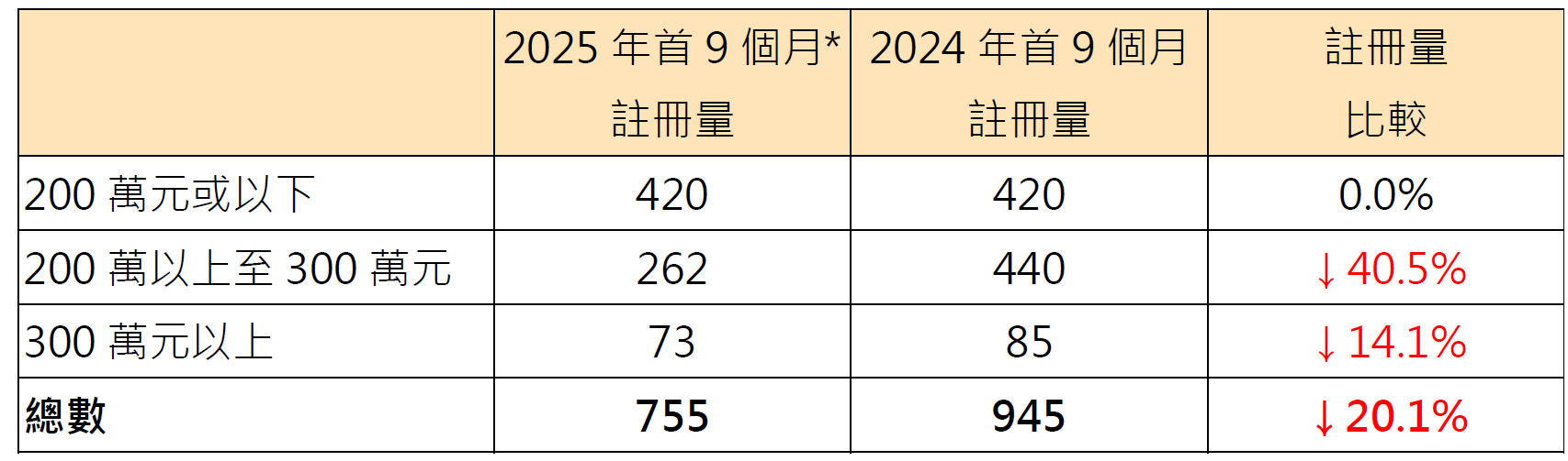 表:按金额划分今年首9个月*二手公屋注册量
