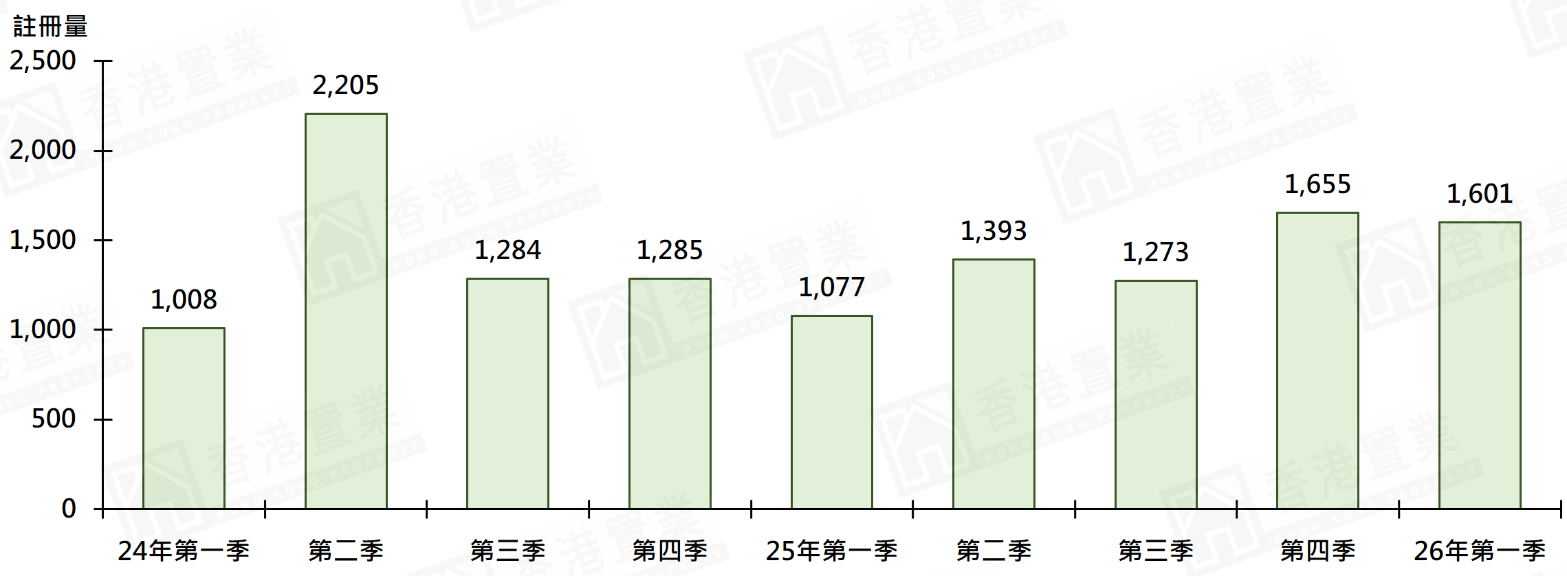 据香港置业资料研究部综合土地注册处资料,首季录1,601宗二手居屋注册,虽较去年第四季的1,655宗减少约3.3%,但仍创7季次高(图)。
