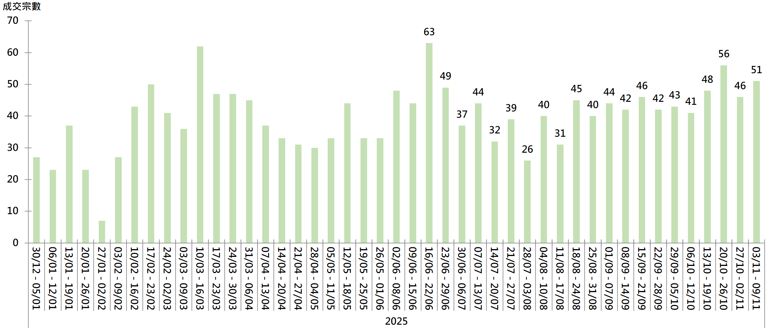图︰20大屋苑每周二手买卖成交宗数走势