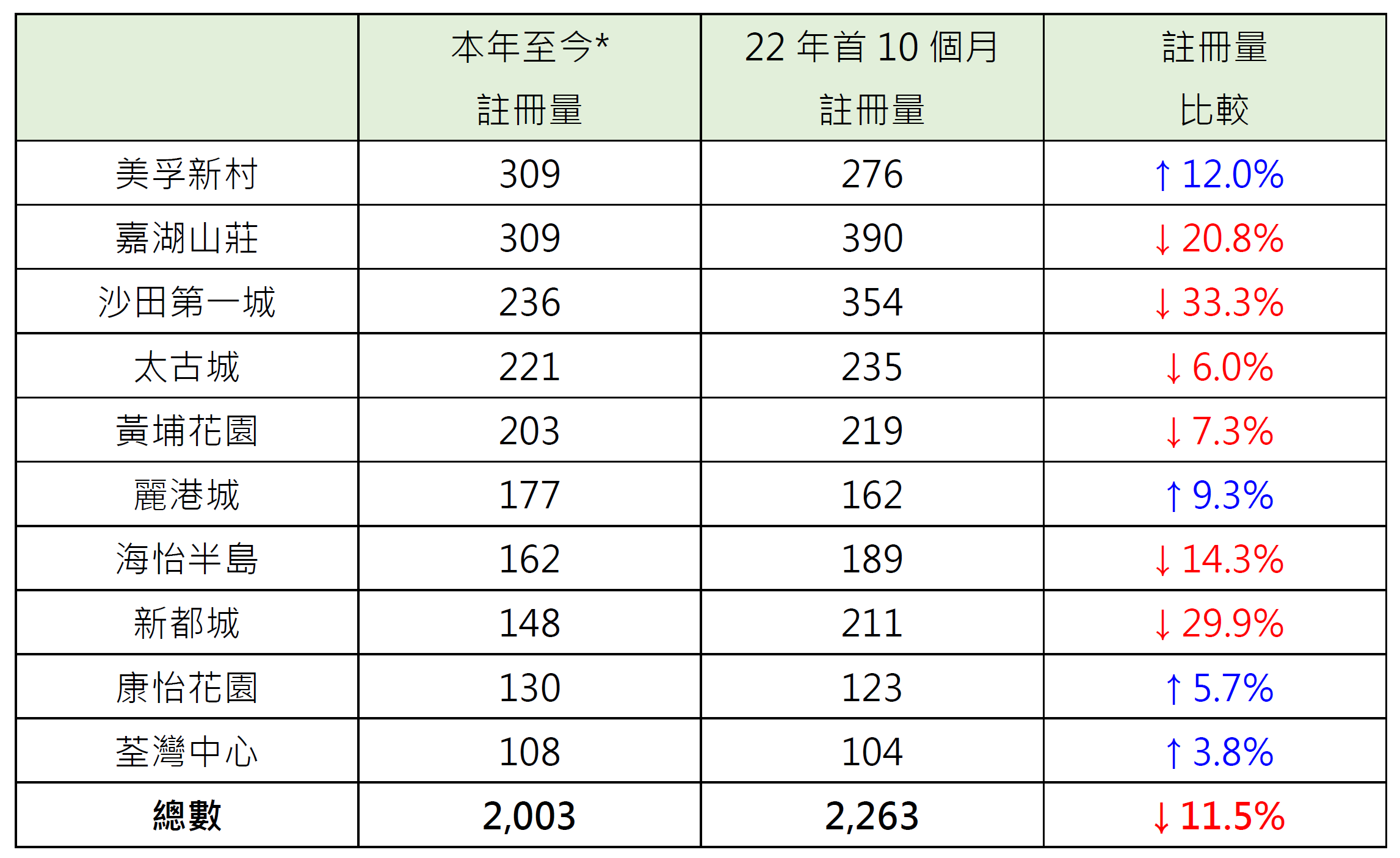 【十大传统屋苑】今年注册量暂较去年差逾1成!