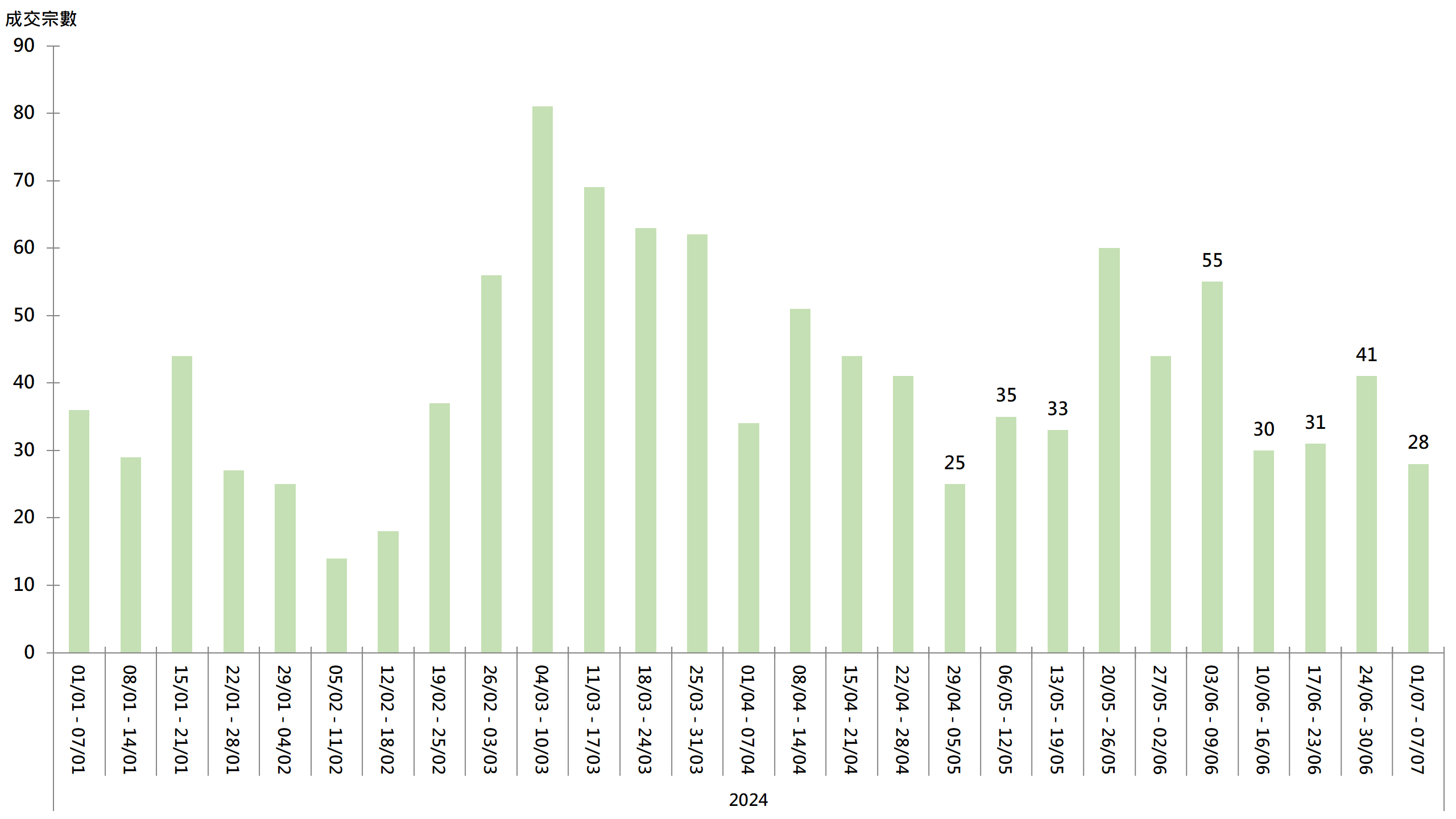 图︰20大屋苑每周二手买卖成交宗数走势