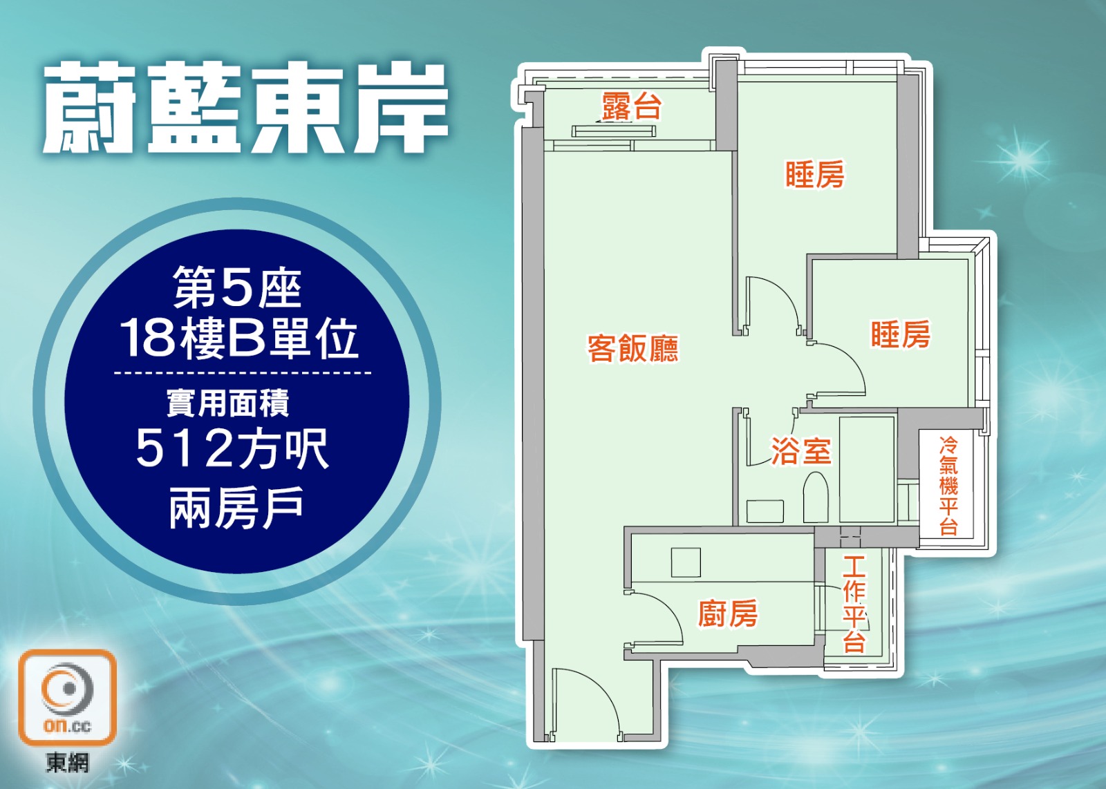蔚藍東岸第5座18樓B單位,實用面積512方呎。