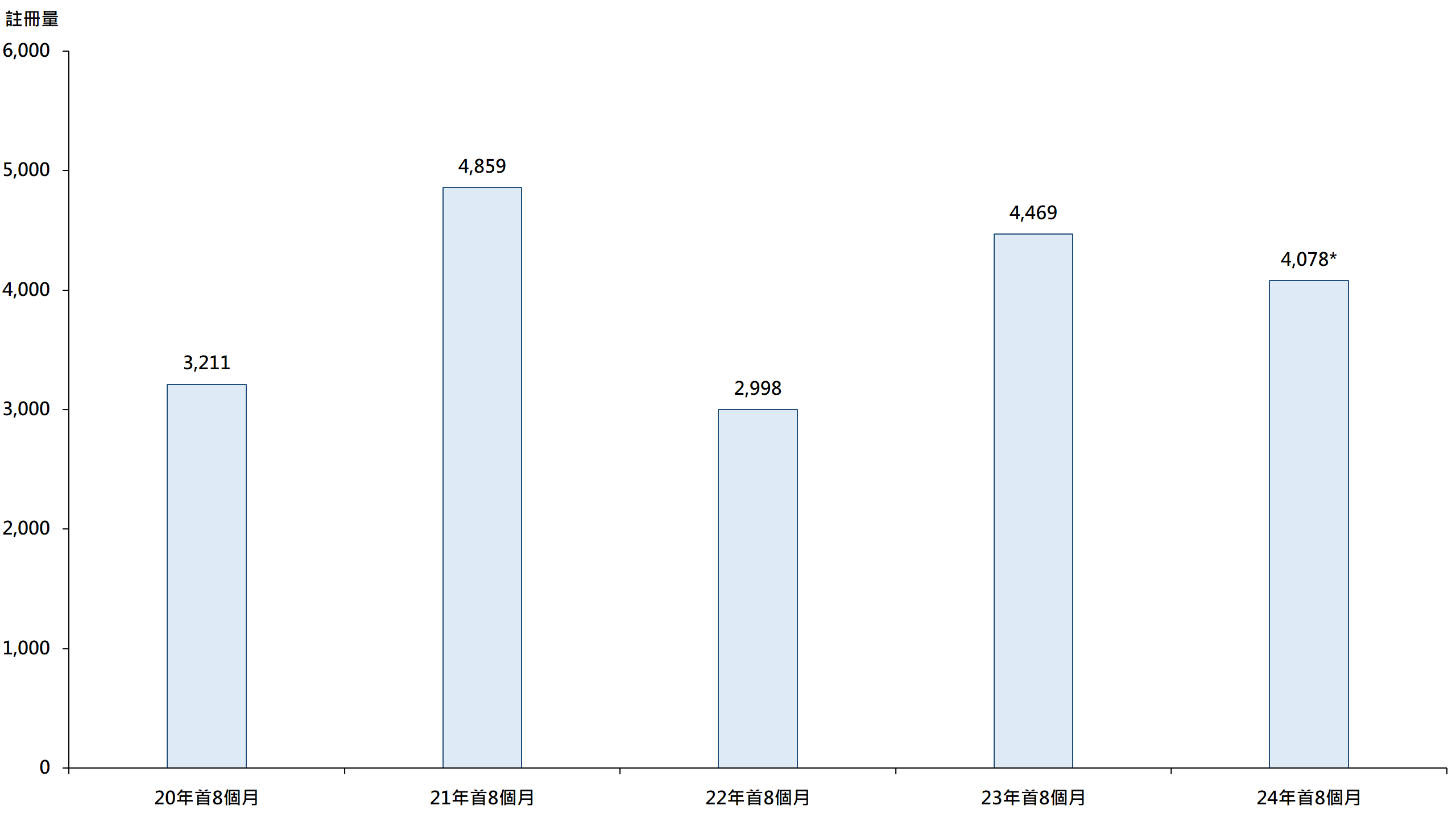 據土地註冊處資料顯示,本年至今(截至8月26日)二手住宅(包括二手私人住宅及二手公營房屋)錄26,694宗註冊,較去年同期的27,442宗減少約2.7%;當中二手居屋(包括已補地價的自由市場及未補地價的第二市場)本年至今錄4,078宗註冊(見圖),較去年同期的4,411宗減少約7.5%,按年同期表現稍微跑輸大市。