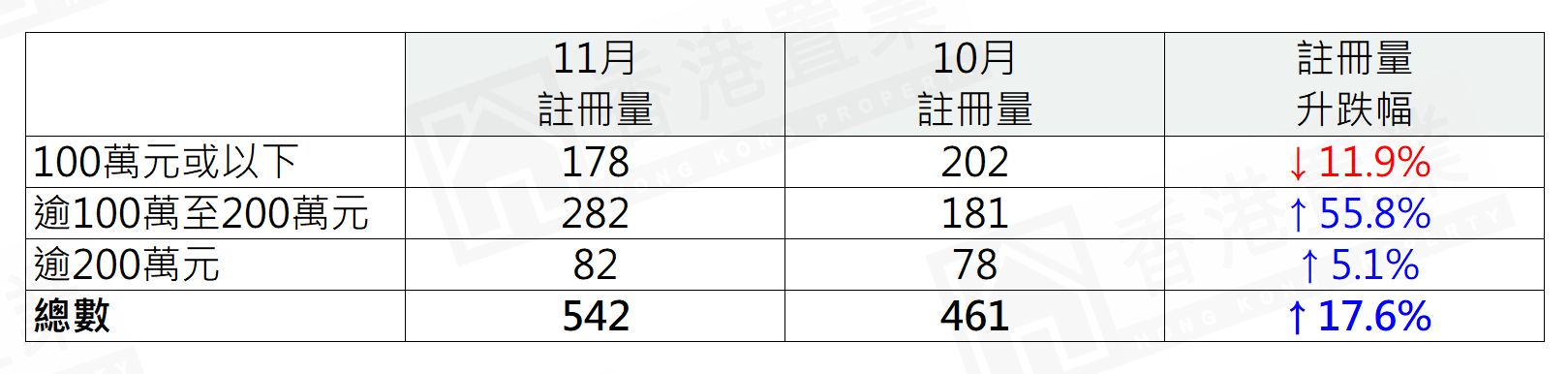鑑於簽署買賣合約至遞交到土地註冊處註冊登記需時,每月註冊個案一般主要反映前一個月市況