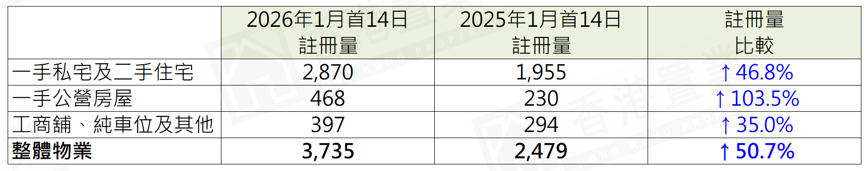 表︰本月至今*整體物業註冊量