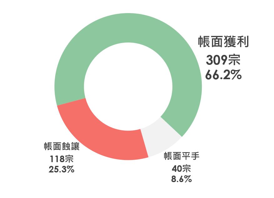 | 短炒個案 | 帳面獲利個案 | 帳面獲利比率 | |