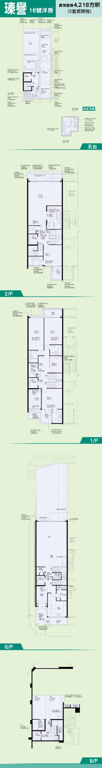 8. 瑧譽16號洋房,間隔為五房五套,面積為4,218方呎。
