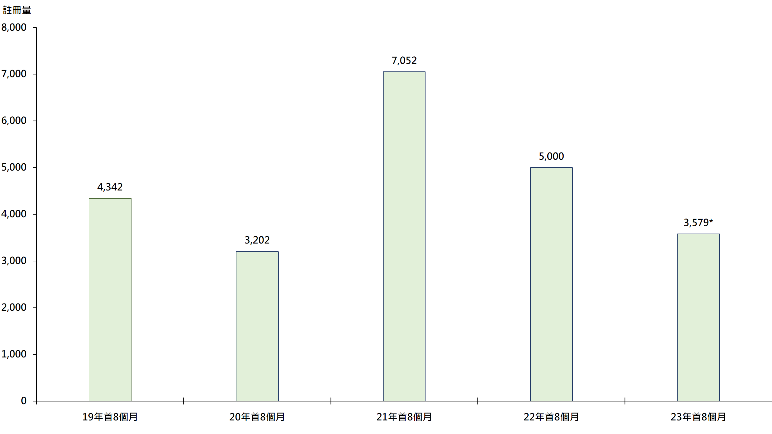 圖:每年首8個月純車位註冊量