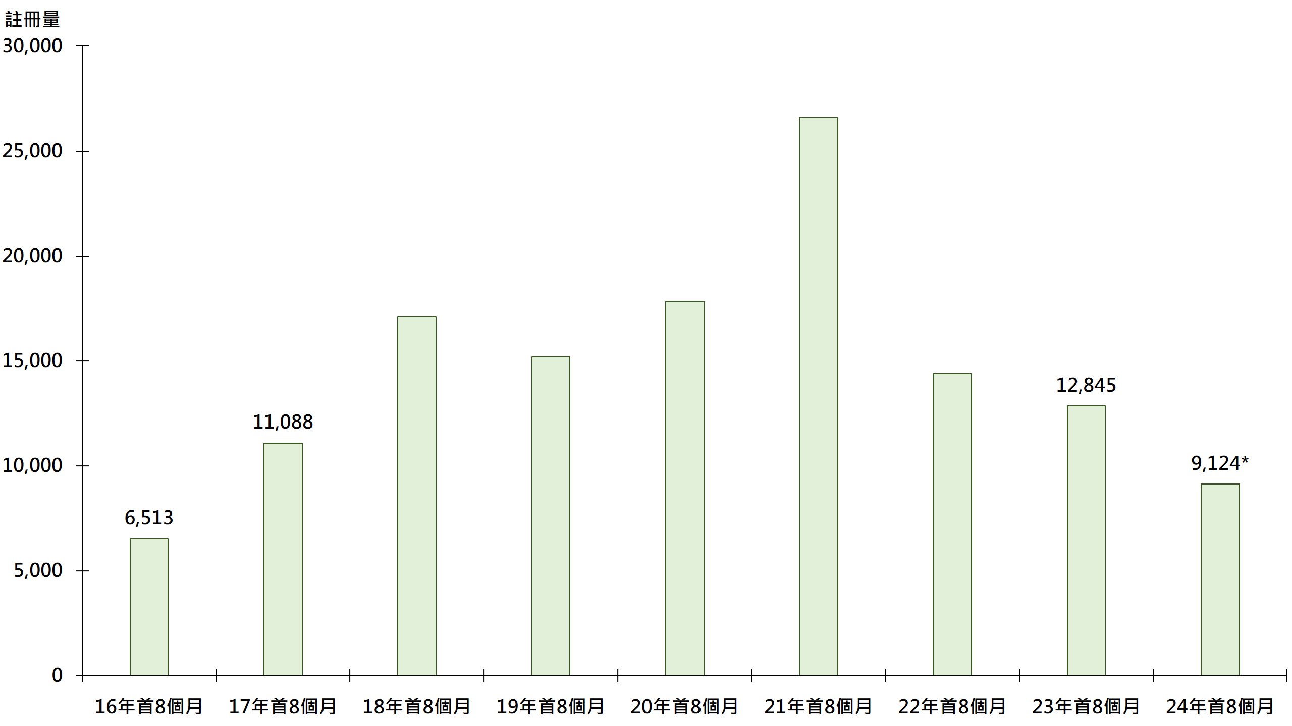 據土地註冊處資料顯示,本年至今(截至8月22日)二手住宅(包括二手私人住宅及二手公營房屋)錄26,433宗註冊,較去年同期的27,067宗減少約2.3%;當中逾500萬至1,000萬元二手住宅錄9,124宗註冊,較去年同期的12,509宗減少約27.1%,註冊量按年同期表現跑輸大市;另外,若以目前註冊進度推算,料今年首8個月逾500萬至1,000萬元二手住宅錄逾9,300宗註冊,屆時將創8年同期新低(見圖)。