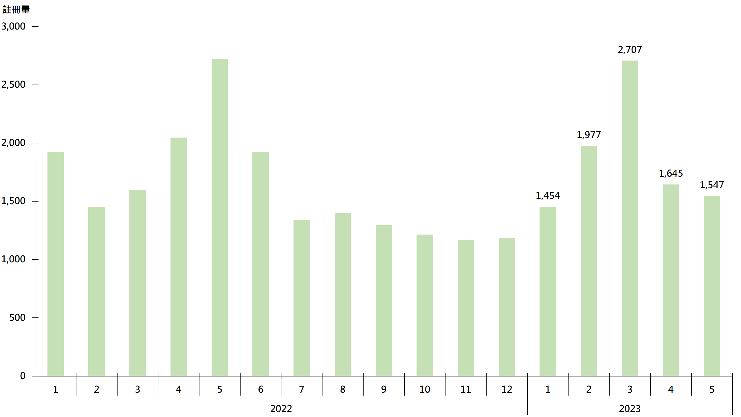 圖:每月逾500萬至1,000萬元二手住宅註冊量